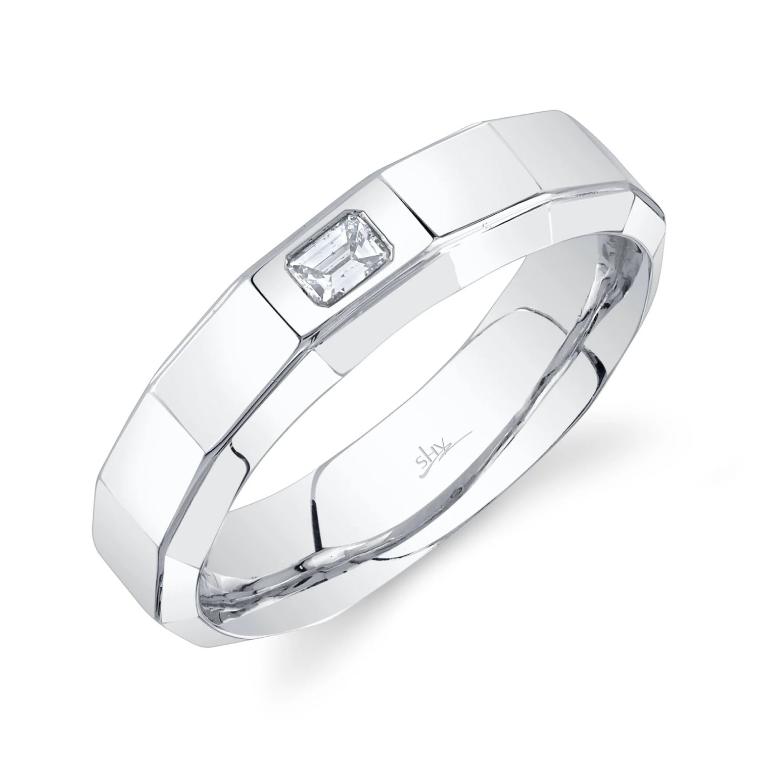 Shy Creation Manno Men's 0.19 ct. Diamond Emerald Band in 14k White Gold - Size 10