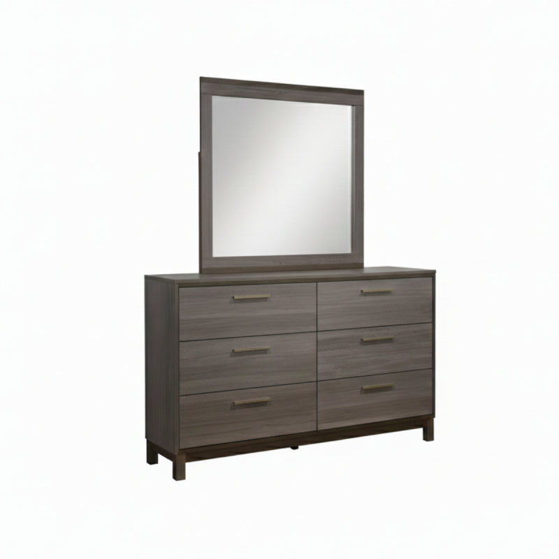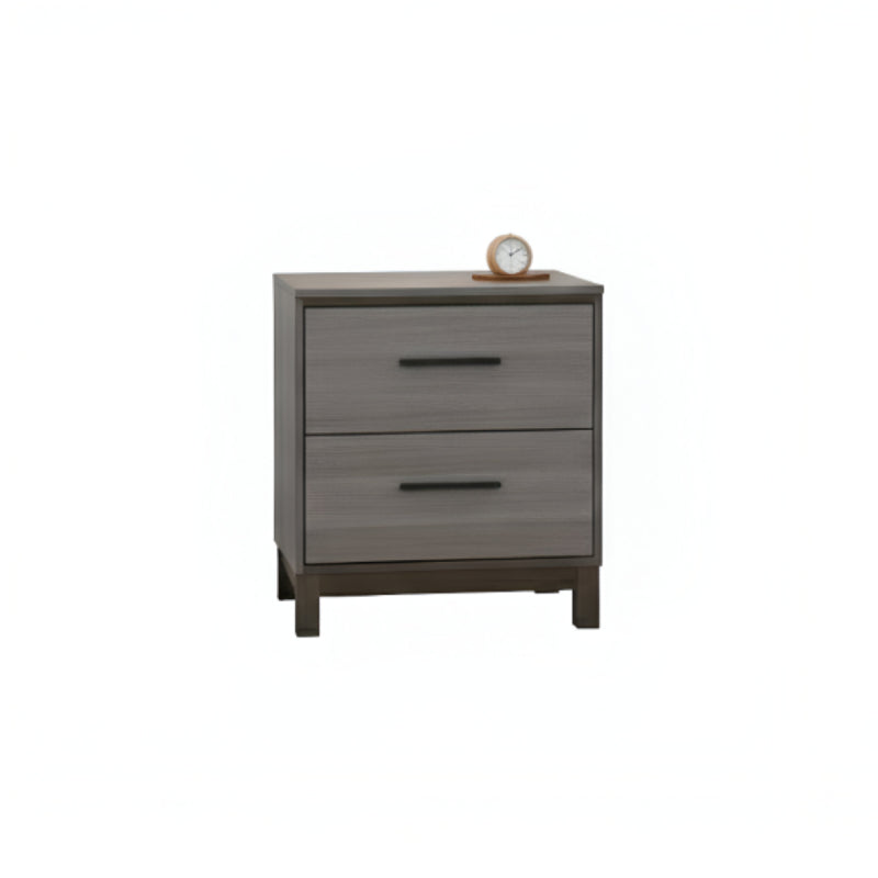- Contemporary bedroom set crafted from solid and manufactured wood.
