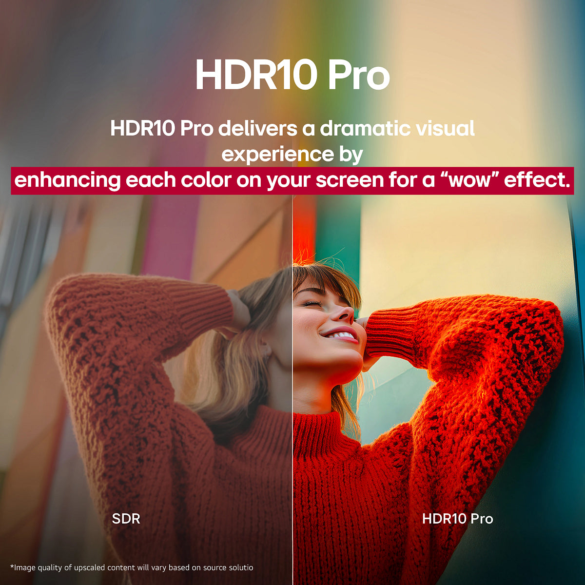 • HDR10 Pro delivers vivid colors and crisp details in all scenes.
