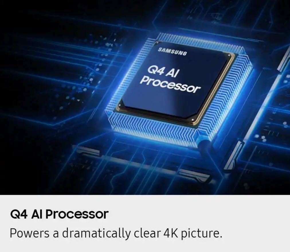 • Q4 AI Processor: Upscales any content to stunning 4K with scene-by-scene optimized picture and sound.