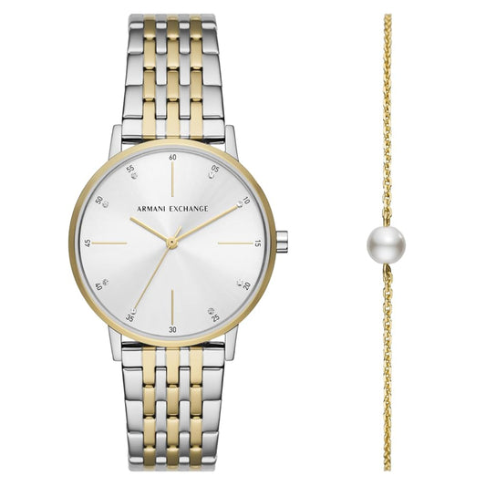 Armani Exchange Lola Women's 36mm Rose Gold-Tone Watch with Bracelet - Silver Dial