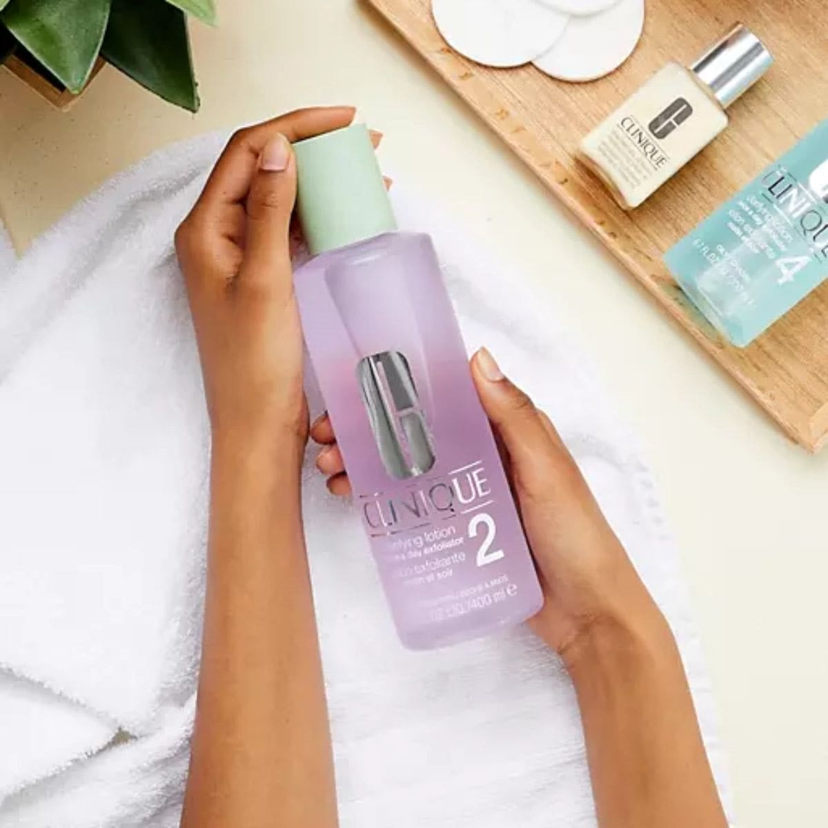 Introducing the Clinique 6.7 oz. Clarifying Lotion 2, a revolutionary product in our Skin Care Collection. This gentle exfoliating lotion is designed to remove dead skin cells and impurities, promoting a clearer, healthier complexion. Formulated for those with dry to combination skin, it helps to balance moisture levels while refining skin texture. The unique blend of ingredients invigorates your skin, leaving it feeling refreshed and hydrated. Say goodbye to dull skin and hello to a radiant glow with this essential part of your daily skincare routine!