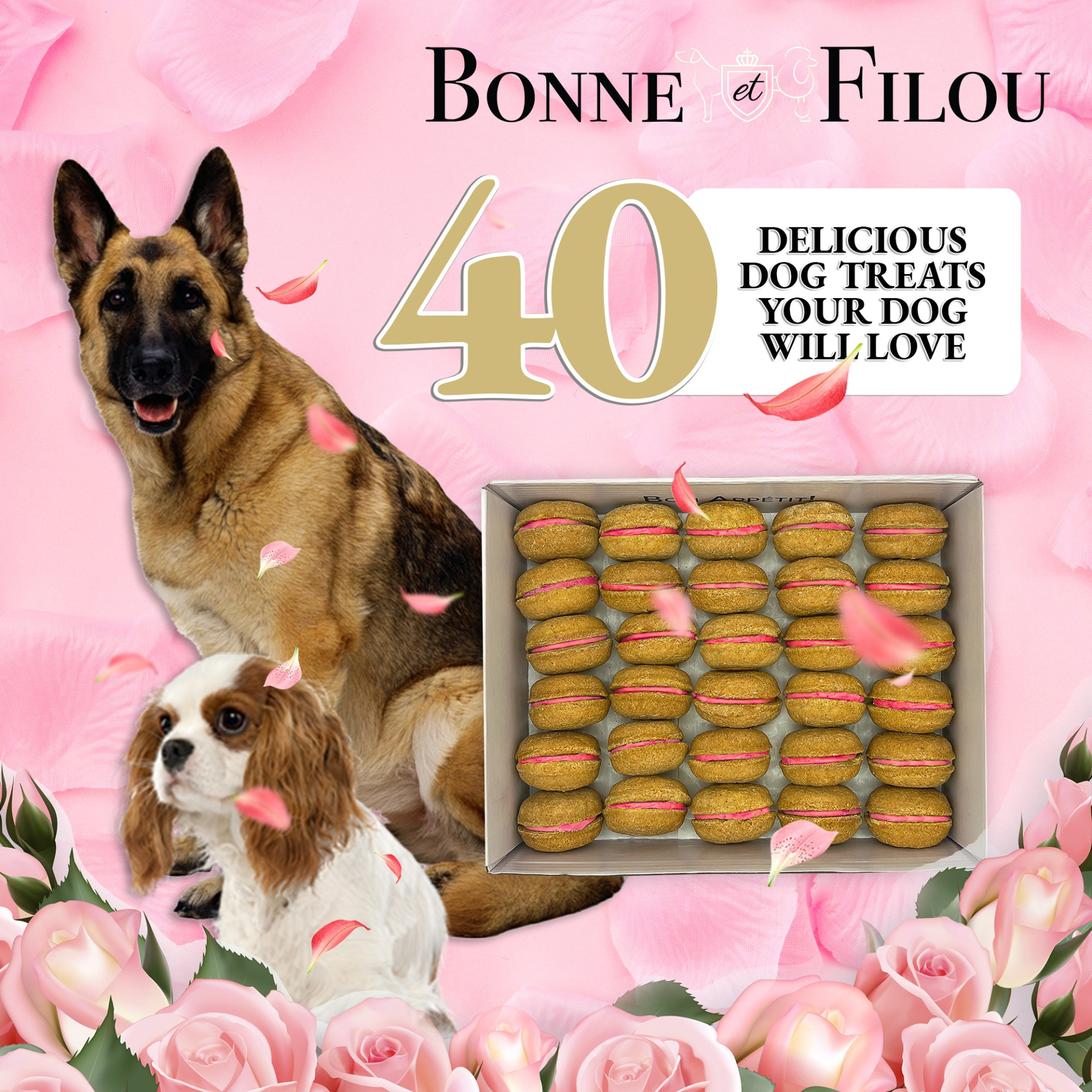 Celebrate all month long with this luxurious gift box filled to the brim with delicious French Dog Macarons! Perfect for the eco-friendly, cost-conscious pet lovers who want to indulge their dog(s) like Royalty, or as the pup-perfect party favor at your next big event!