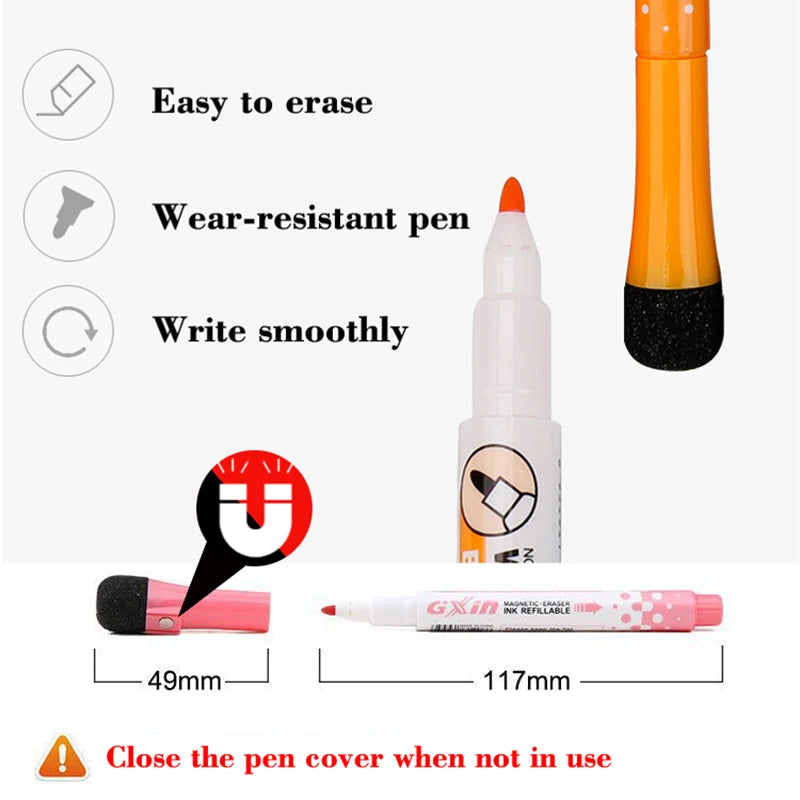 - Includes 2 whiteboards, 8 colorful pens, and 1 eraser for a complete setup.