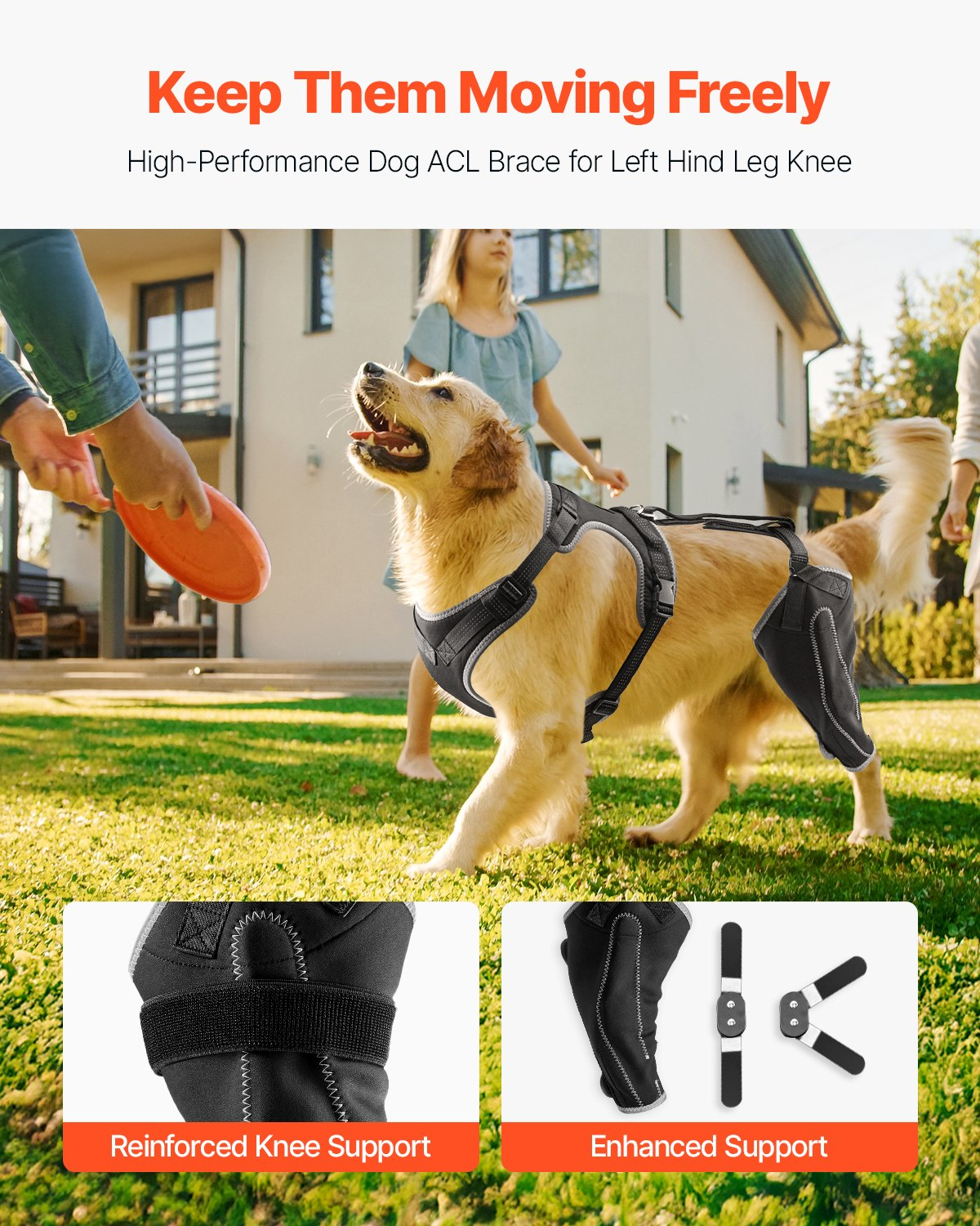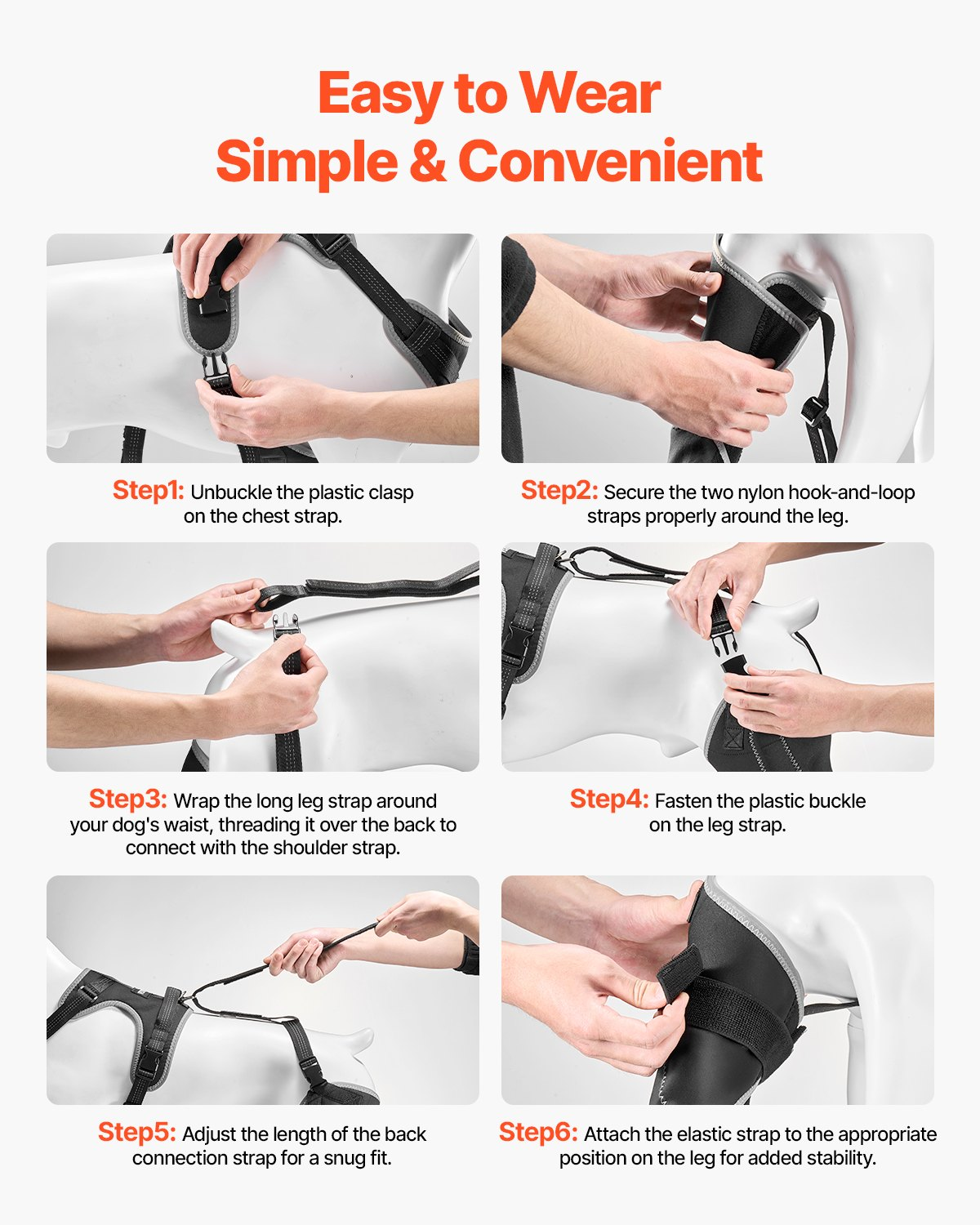 Size: XL,Color: Black,Chest Harness: length: 38cm (14.96in), width: 19.5cm (7.68in), thickness: 0.5cm (0.20in),Item Model Number: D0036,Product Weight: 0.58kg / 1.28lbs,Leg Brace: length: 43cm (16.93in) , width: 18cm (7.09in), thickness: 0.5cm (0.20in),Intended Use: Rear Knee Joint β Left Hind Leg,Product Dimensions:,Main Material: Neoprene, Double-Layer Hook & Loop Straps, Non-Woven Fabric