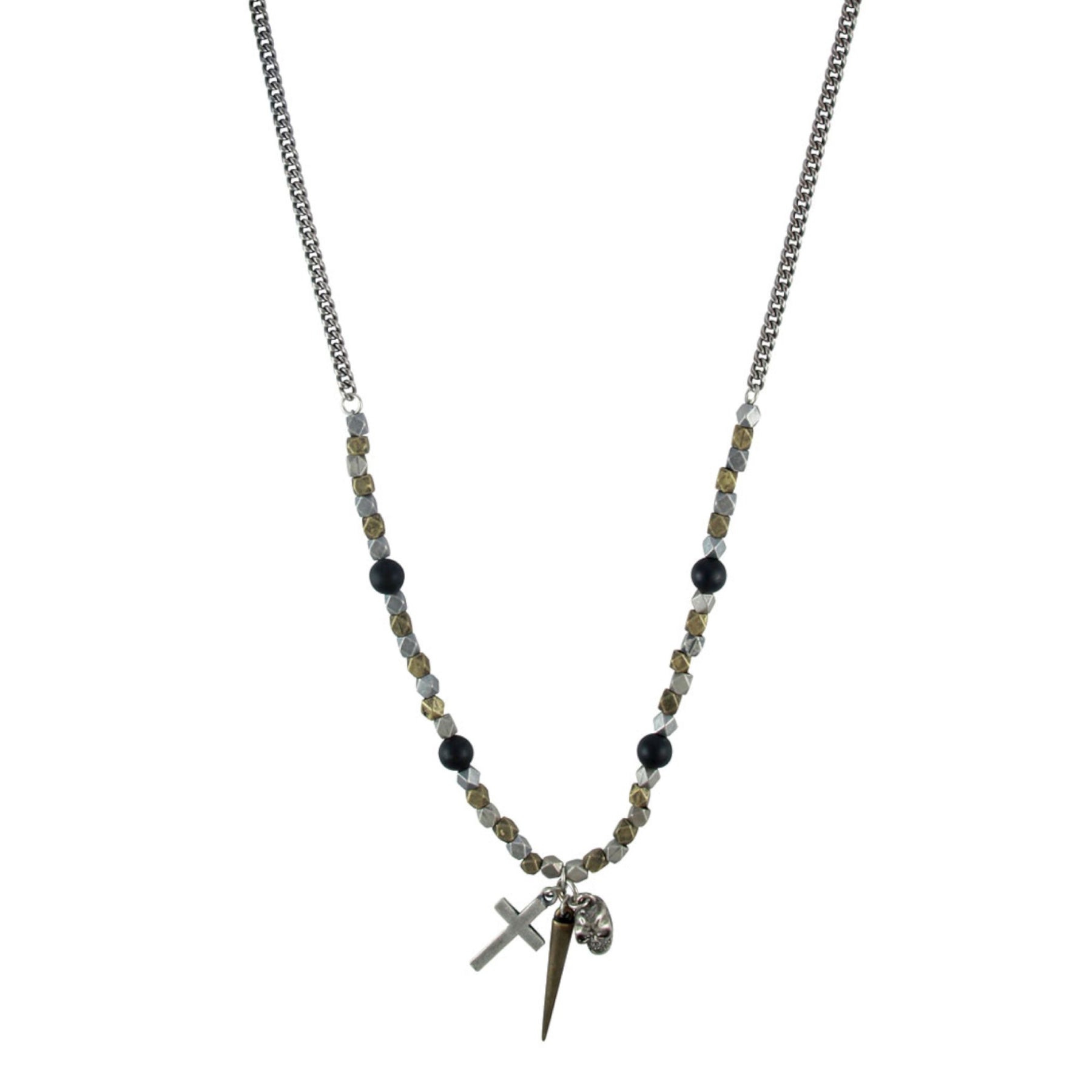 Mr. Ettika Men's Faceted Bead Necklace with Spike, Cross and Skull
