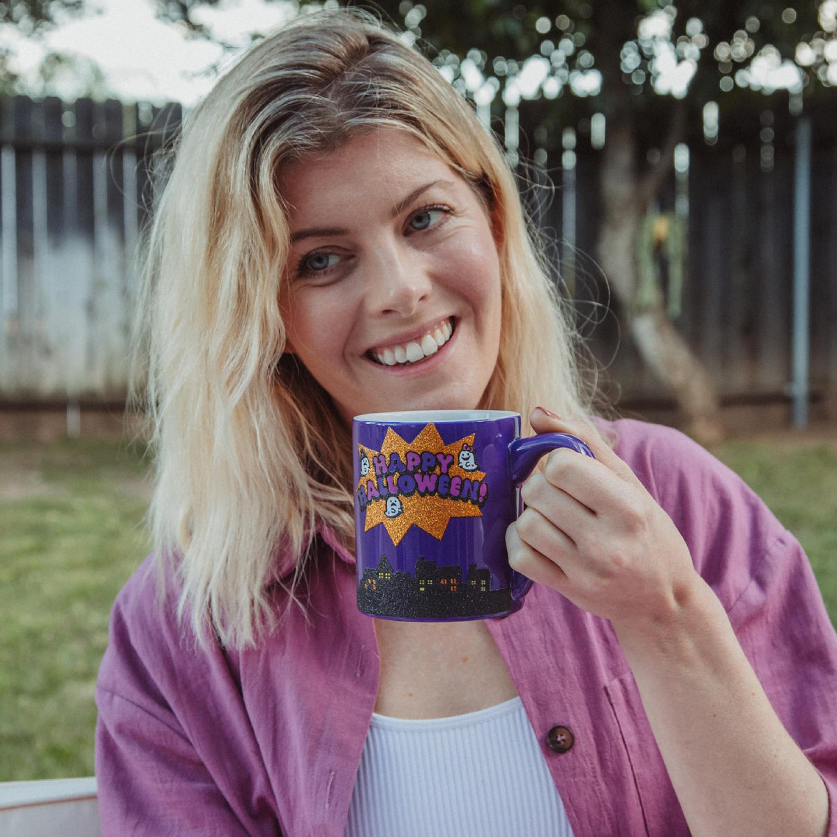 Sanrio Hello Kitty "Happy Halloween" 14 oz Ceramic Glitter Mug - Purple