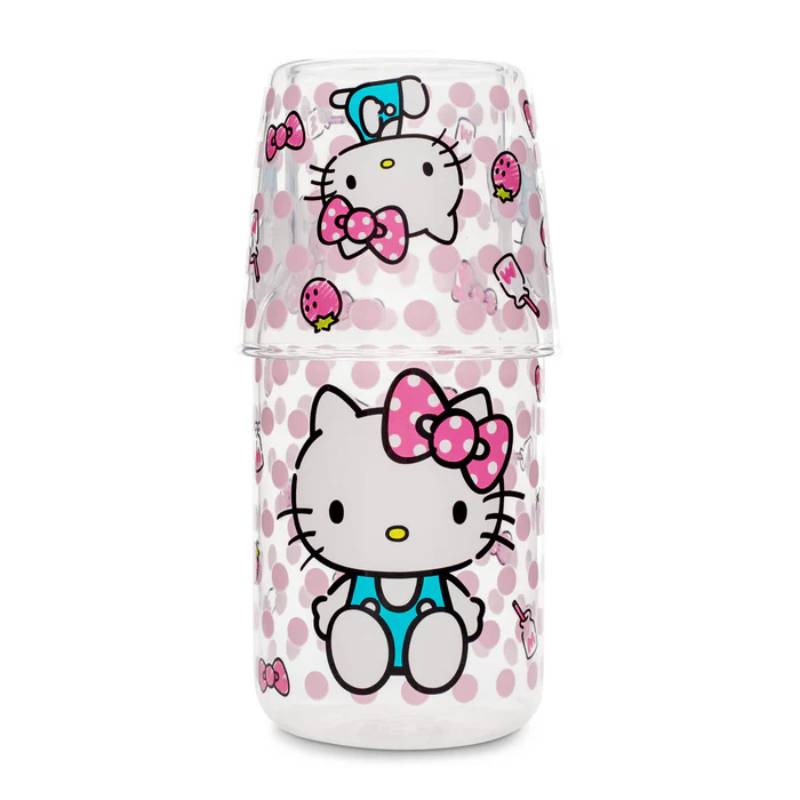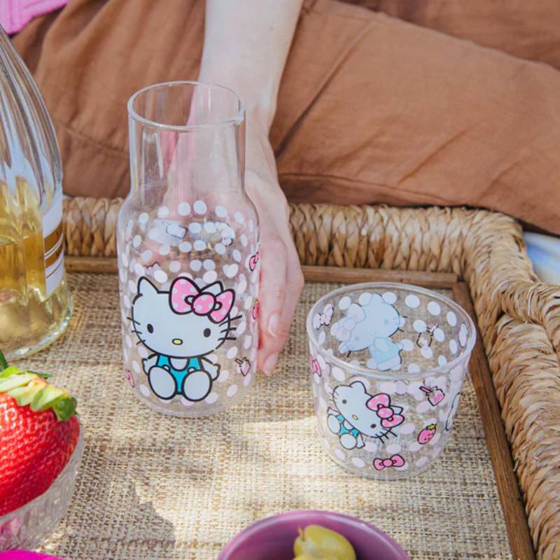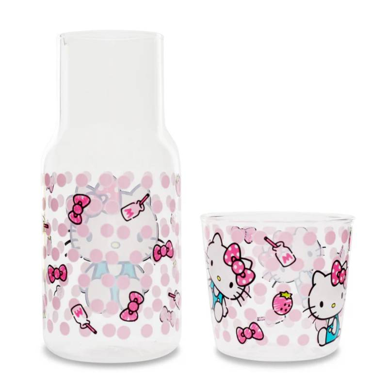 Sanrio Hello Kitty Pink Dots 18 oz Glass Pitcher and 8 oz Cup