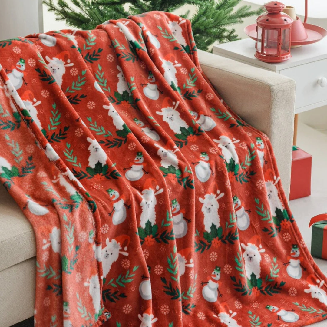 Ultra Soft Oversized Plush Holiday Throw Blanket - Red Santa Llama