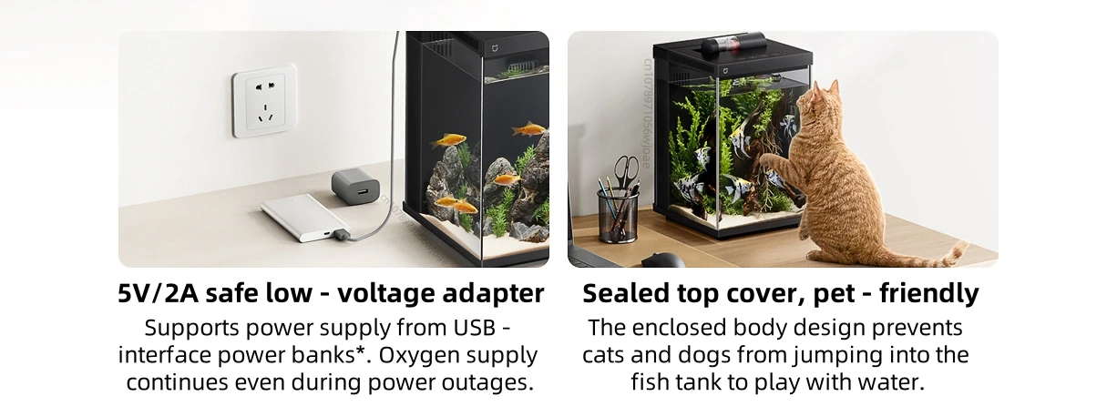 The enclosed body design prevents cats and dogs from jumping into the fish tank to play with water.