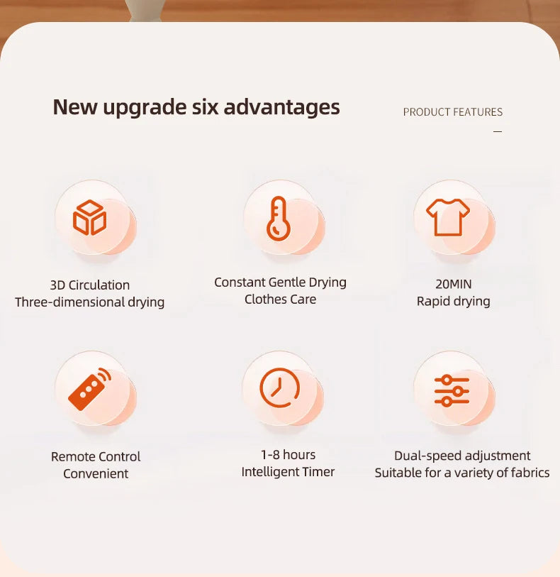 The Multifunctional Dryer Electric Clothes Dryer is the ultimate solution for your laundry drying needs. This portable, compact, and foldable dryer combines convenience and performance, making it perfect for small spaces and busy lifestyles. With its efficient warm air drying method, it promises to dry your clothes quickly while ensuring they remain in perfect condition. The included dryer bag and digital timer control add to its versatility, allowing you to customize your drying experience. Say goodbye to damp clothes and hello to fresh, dry garments with this innovative laundry companion!
