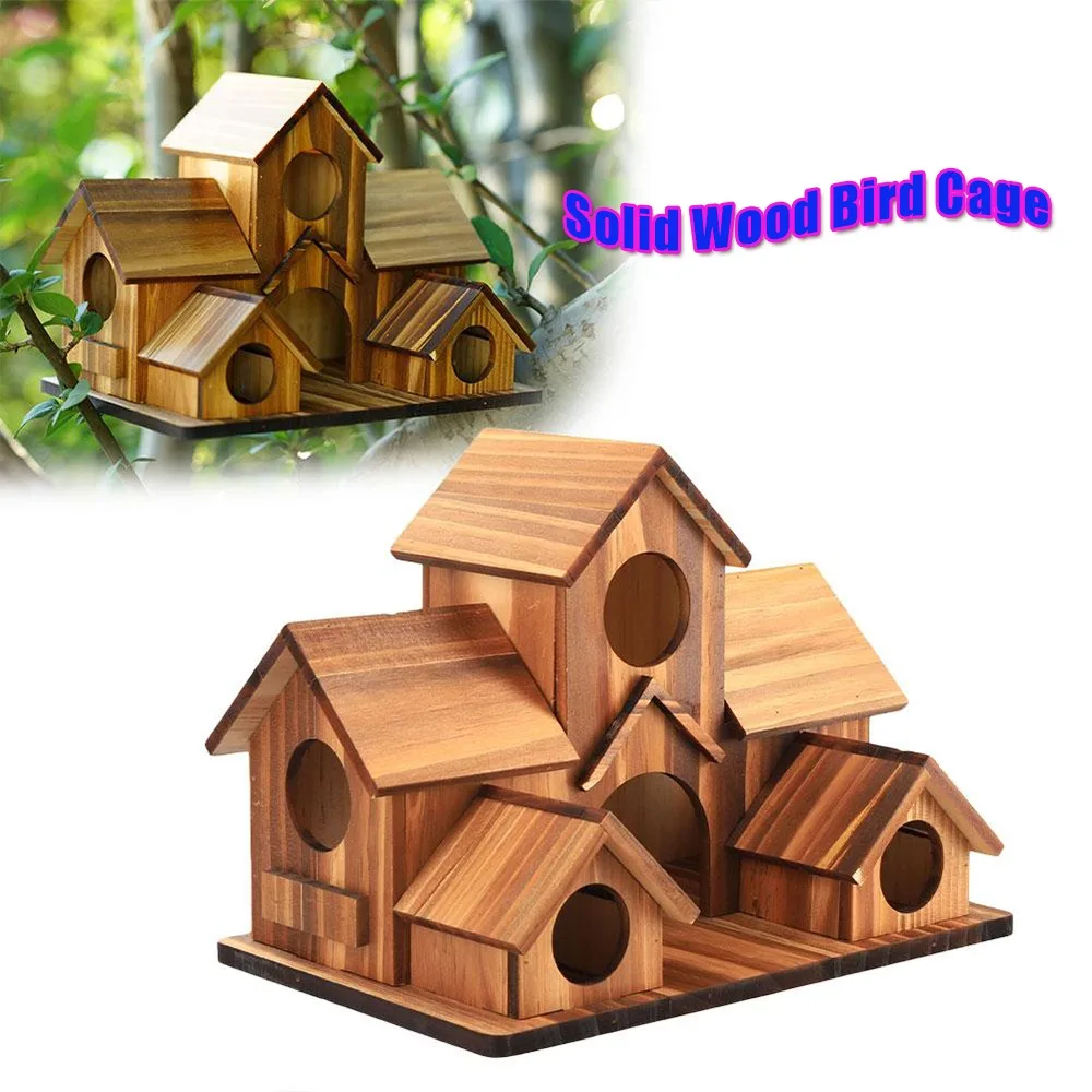 Wooden Bird's Nest Ornaments Feeders outside Birdhouse Village Outdoor Supplies Room Hut for Cage Houses Outdoors