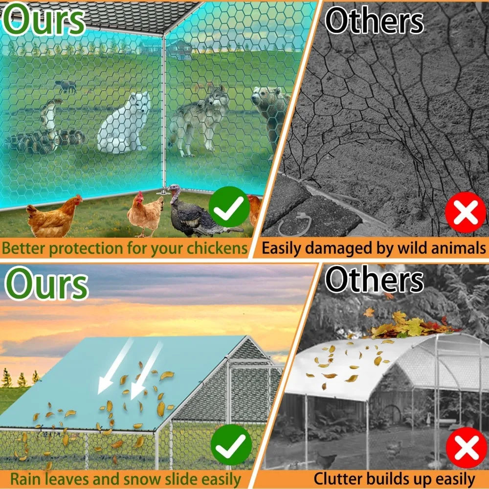 Large Chicken Coop Run with Immersed Wire Mesh, Metal Chicken Coop for 12 Chickens Heavy Duty Chicken Run in for Yard with Wate