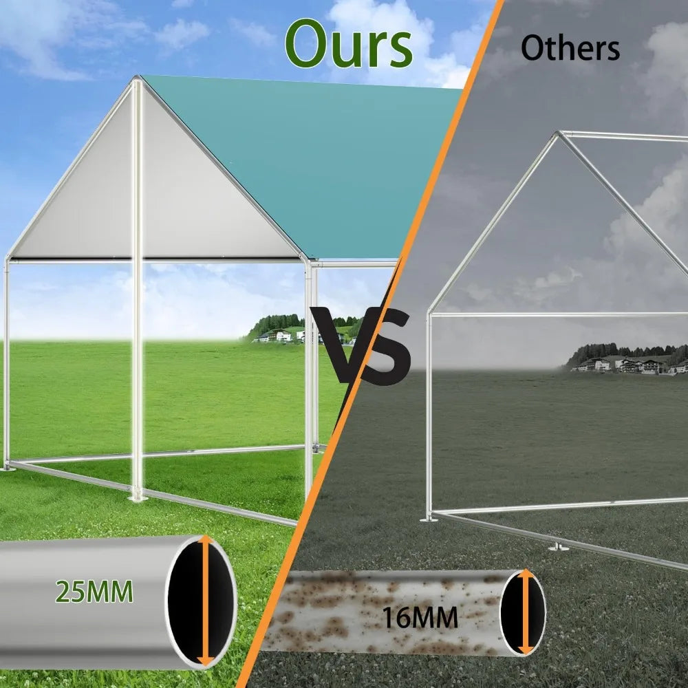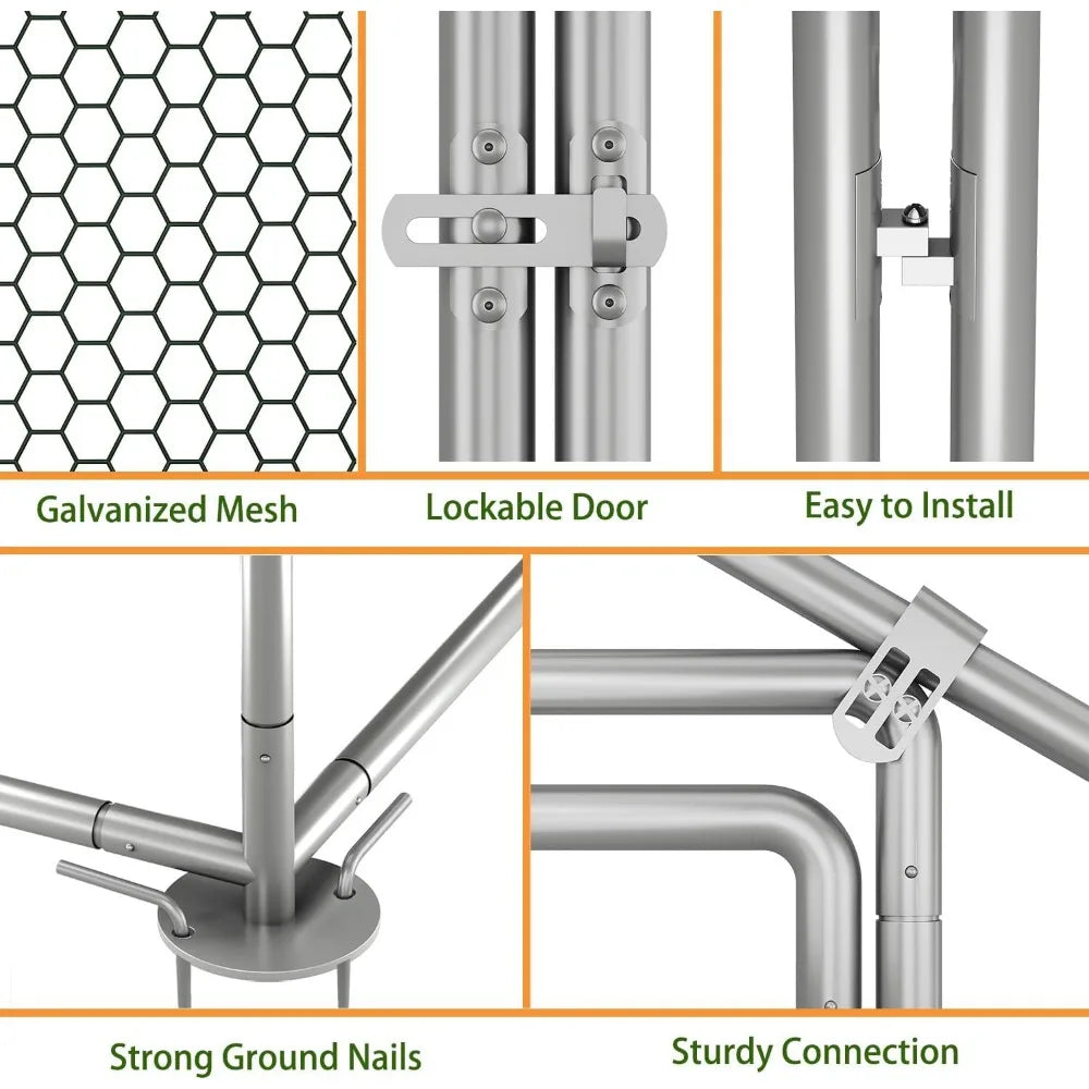 - γAnti- Rust and Sturdy Steel StructureγThe metal chicken coop uses a high-quality steel pipe frame, so don't worry about rusting outdoors. The coop is solid enough for your chicken to have free space in it. Provide a lot of zip ties to secure it from predators.