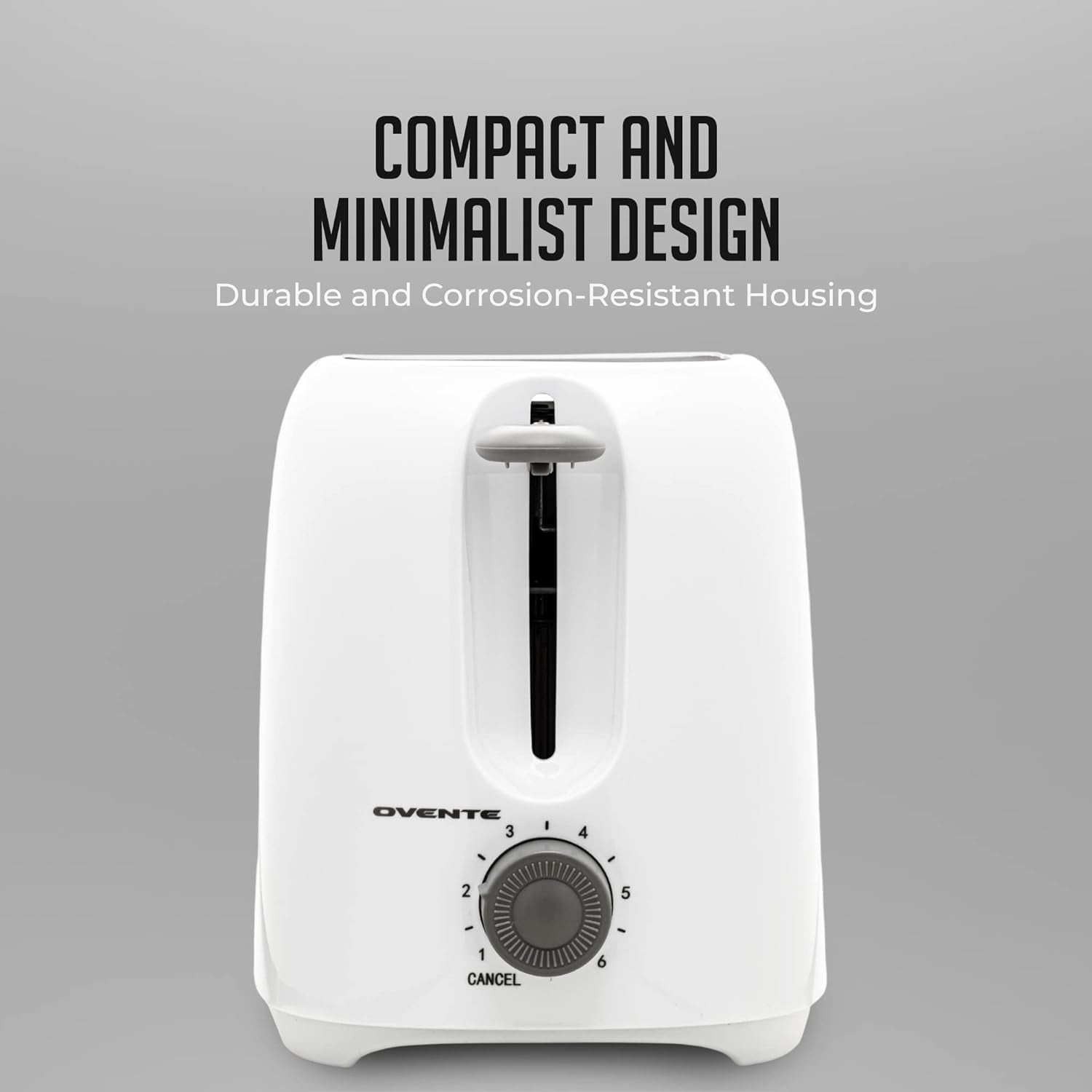 Ovente Electric 2-Slice Toaster Machine with Removable Crumb Tray - White