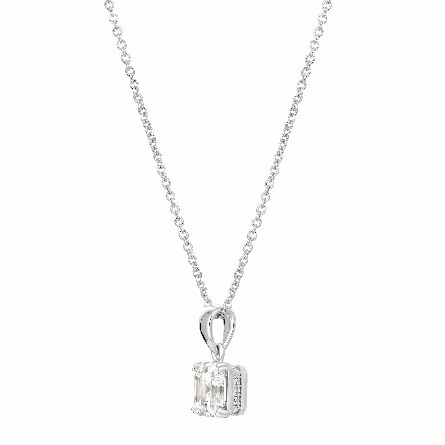 Crislu Women's Royal Asscher Cut Pendant Necklace in Pure Platinum Plated 925 Sterling Silver