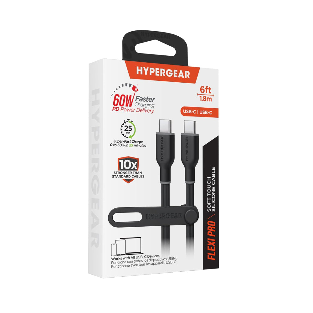 HyperGear Flexi Pro 6' USB-C to USB-C Soft Touch Fast Charge Cable - Black