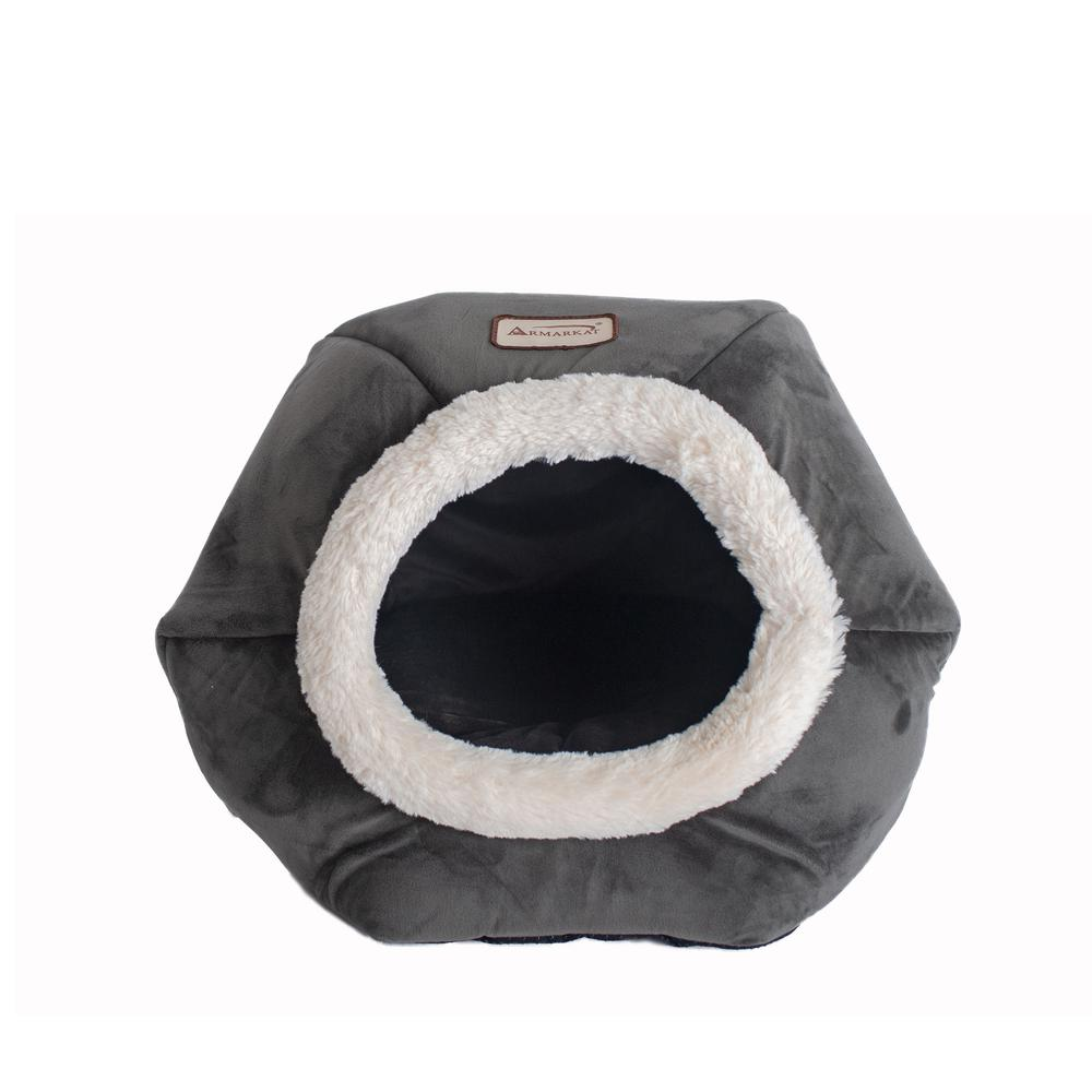 Looking for a special nook for your feline or small pooch? Armarkat offers its C80CSH/MB luxe velvet cat bed. It features a dark gray color with soft white plush trim.