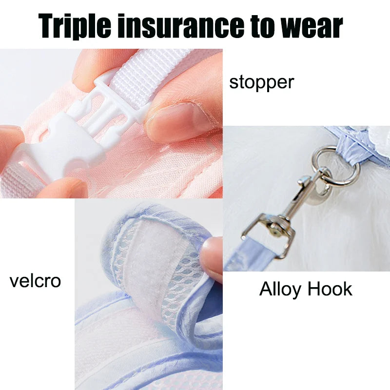 5.Triple Insurance to Wear: Stopper, Velcro, and Alloy Hook ensure that the harness stays secure, preventing your pet from escaping.
