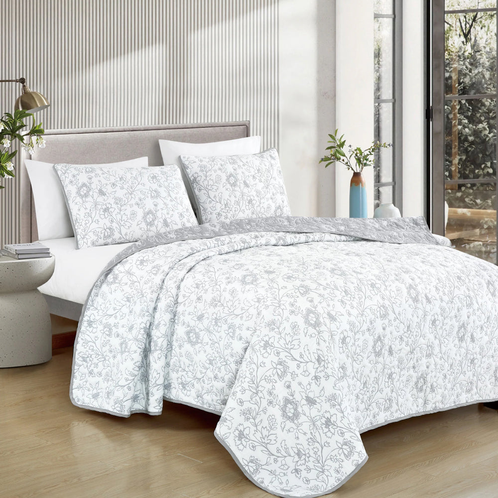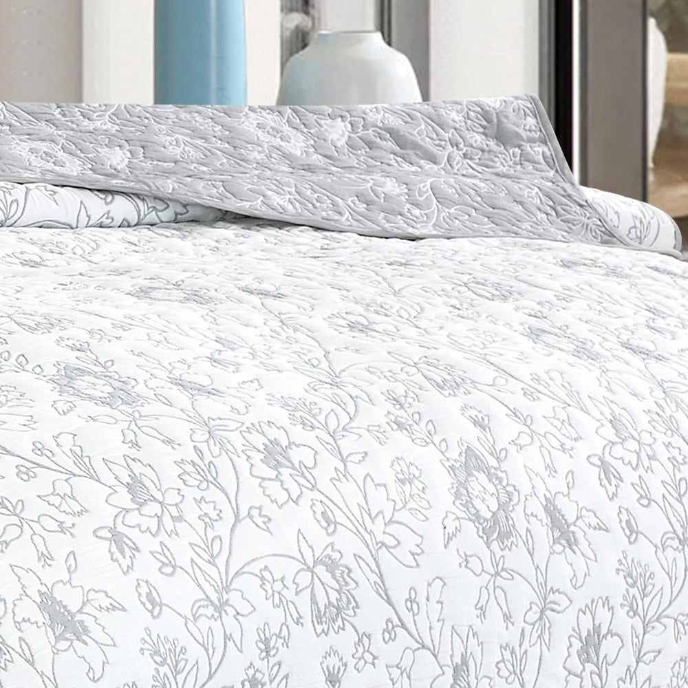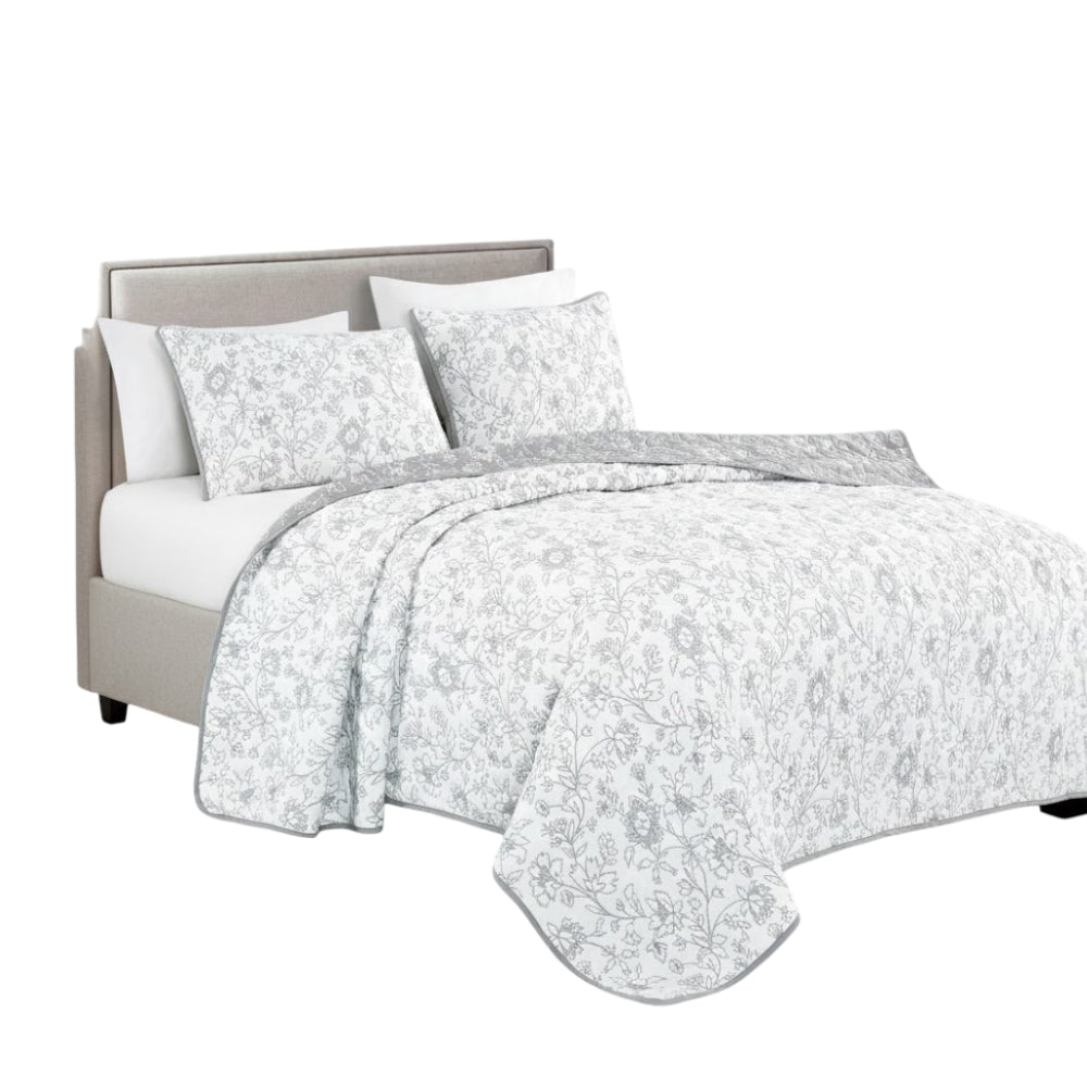 The Elight Home Ratna bedspread set brings timeless elegance and everyday comfort to your bedroom with its soft cotton-blend fabric and refined textured matelassé pattern. Designed in a soothing white and gray color palette, this coverlet adds visual depth while maintaining a clean, contemporary look. Lightweight yet cozy, it is ideal for year-round use and instantly refreshes your sleeping space. The matching pillow shams complete the coordinated style, making this 3-piece set a perfect choice for both modern and classic interiors.