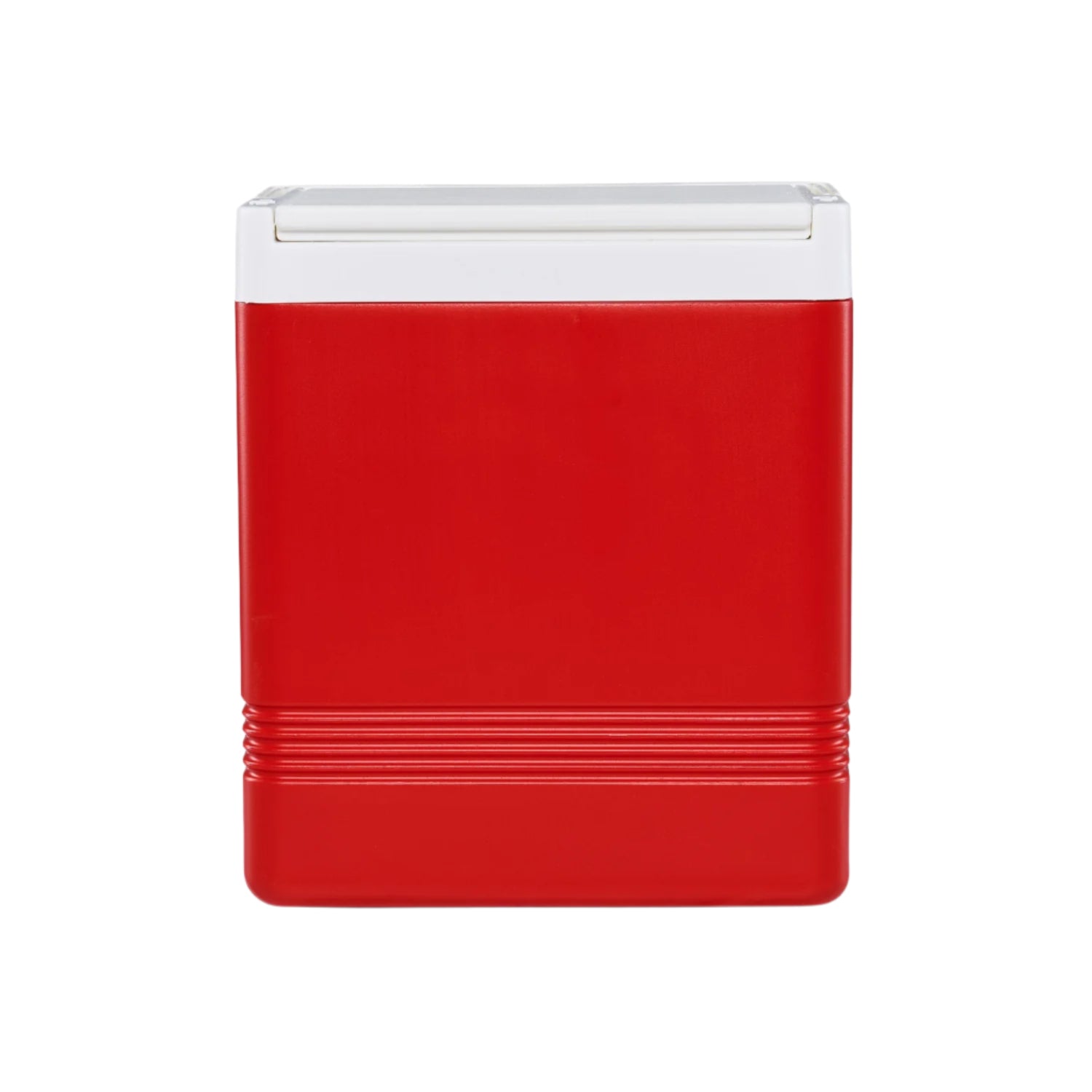 Stay hydrated on your next outdoor adventure with the Igloo 00043360 Legend 17 Quart Cooler - Red. This cooler is crafted from heavy-duty plastic, ensuring durability and longevity during all your adventures. Its slim profile allows it to fit easily behind vehicle seats and under stadium seating, making it the perfect companion for tailgating, camping, or beach outings. With the capacity to hold up to 24 cans and even accommodate a 2-liter bottle in an upright position, you can bring along all your favorite beverages, sandwiches, fruits, and snacks. The integrated swing-up bail handle simplifies transportation, and it folds down for easy storage. The removable, reversible lid features a tray and cup holder, adding versatility for food preparation and serving. Designed for convenience, this cooler is easy to clean, with a stain and odor-resistant liner that ensures it stays fresh for your next adventure.