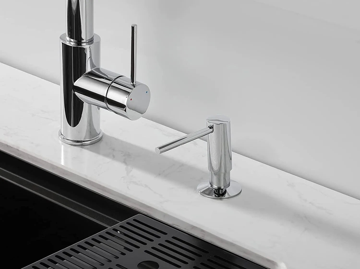 Make your kitchen chores more efficient and maintain cleanliness effortlessly with this high-quality soap dispenser. Say goodbye to cluttered countertops and hello to elegance and convenience!