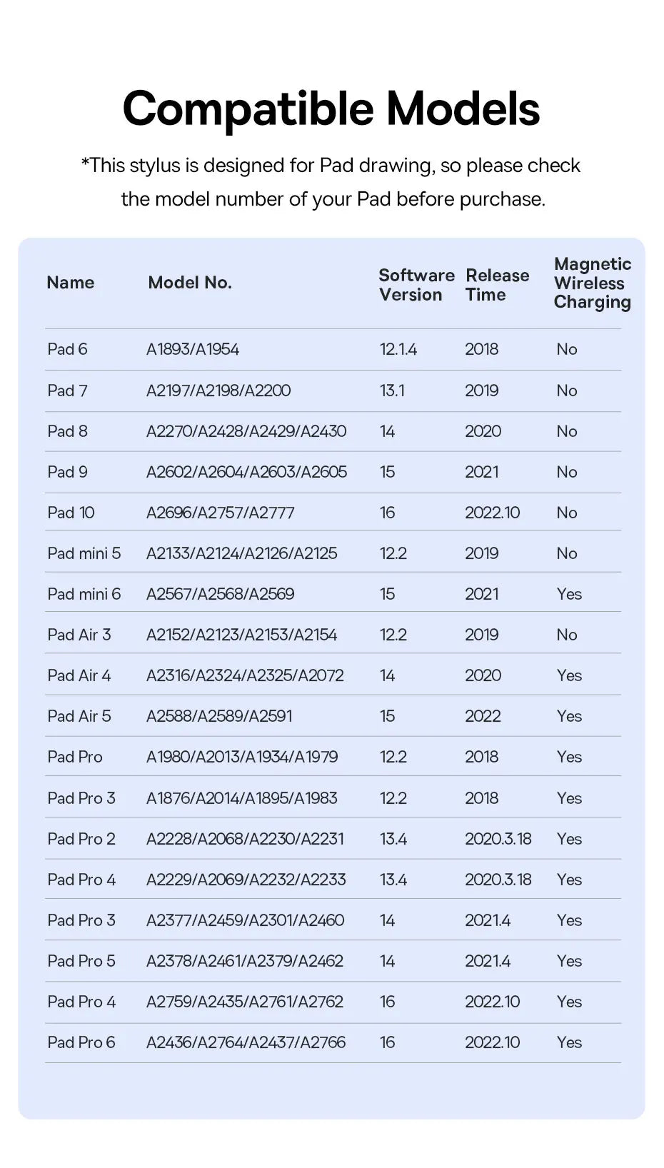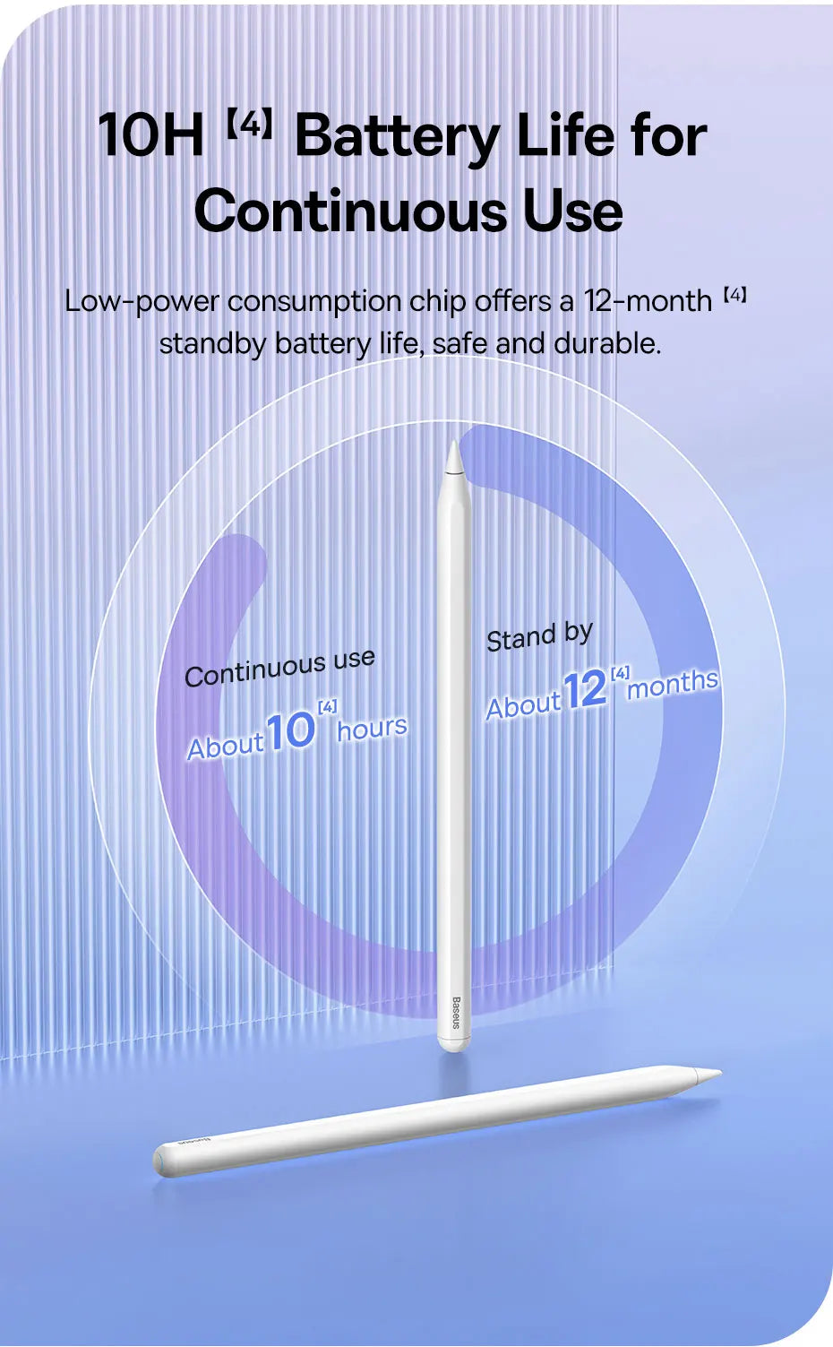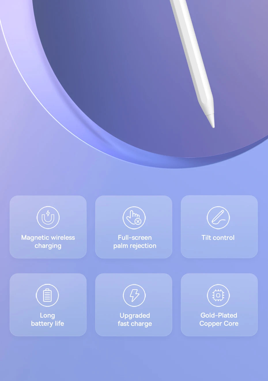 Baseus Gen2 Digital Stylus for iPad 4/5/Pro 11 & 12.9-inch Mini 6 with Palm Rejection and Wireless Charging