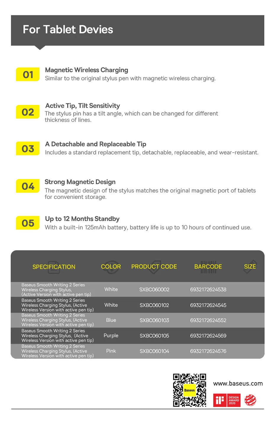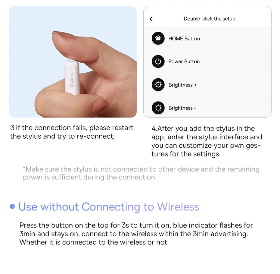 Experience the next level of digital creativity with the Baseus Gen2 Digital Stylus for iPad 4/5/Pro 11 & 12.9-inch/ Mini 6. This advanced stylus is designed for those who seek precision and comfort, making it the perfect companion for artists, students, and professionals alike. With features such as wireless charging, tilt sensitivity, and palm rejection technology, you can effortlessly draw, sketch, and take notes. The Baseus Gen2 offers a writing experience that feels natural and fluid, allowing you to unleash your creativity whether you're crafting digital art or navigating your device.