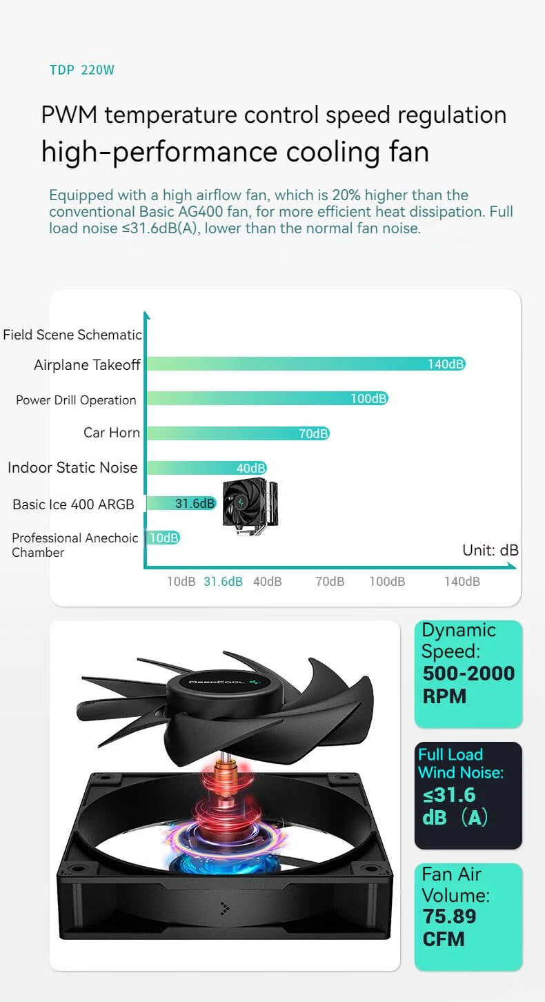 DEEPCOOL AG400 CPU Air-Cooling Radiator 4 Heat Pipes Dual Fan 2000RPM for Intel LGA1700 1200 115X AMD AM4
