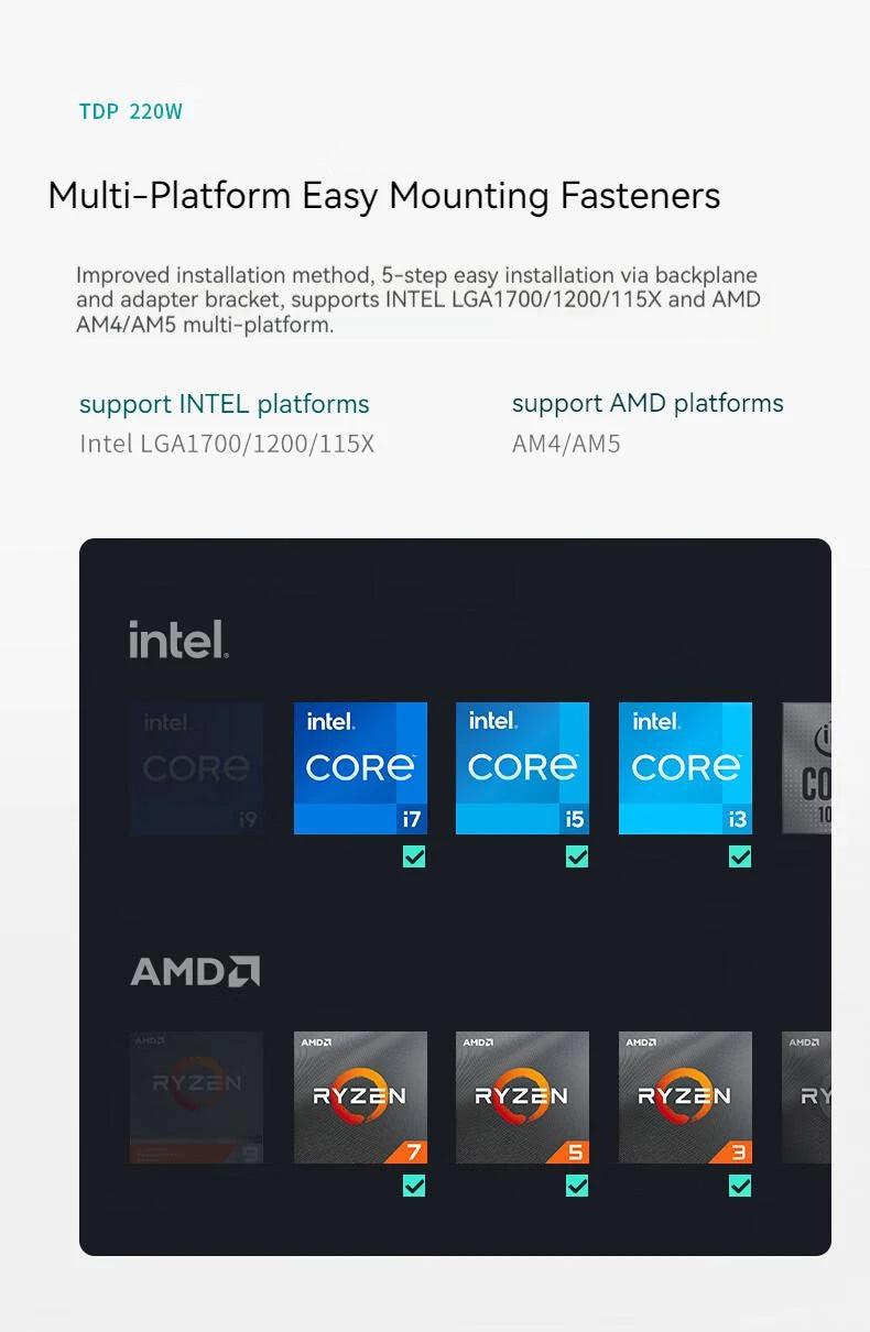 - Versatile Compatibility: Supports Intel LGA1700, 1200, 115X, and AMD AM4 sockets.