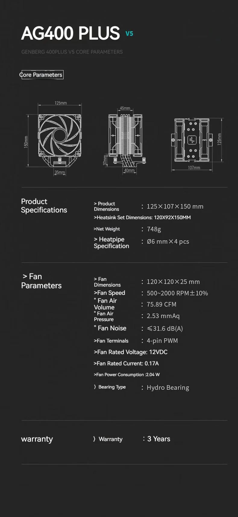 - High Performance: Features four heat pipes for efficient heat transfer and cooling.