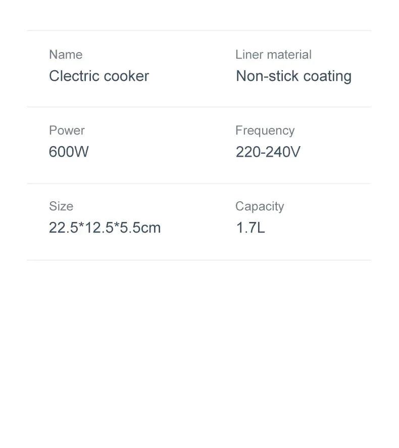 Discover the ultimate cooking convenience with the Mini Electric Rice Cooker Double Layer Multi Cooker Non-Stick Smart Single MultiCooker Steamed Rice Pot for Home Electric Cooker. This innovative kitchen appliance is designed to simplify your meal preparation, allowing you to create a variety of delicious dishes with ease. Its double-layer design enables you to steam vegetables while cooking rice or grains at the same time, enhancing your cooking efficiency. The non-stick inner pot ensures hassle-free cooking and easy clean-up, making it an essential tool for busy families or individuals. With smart cooking functions, this versatile multi cooker can whip up fluffy rice, hearty soups, and savory stews, all while occupying minimal counter space in small kitchens or dorms.