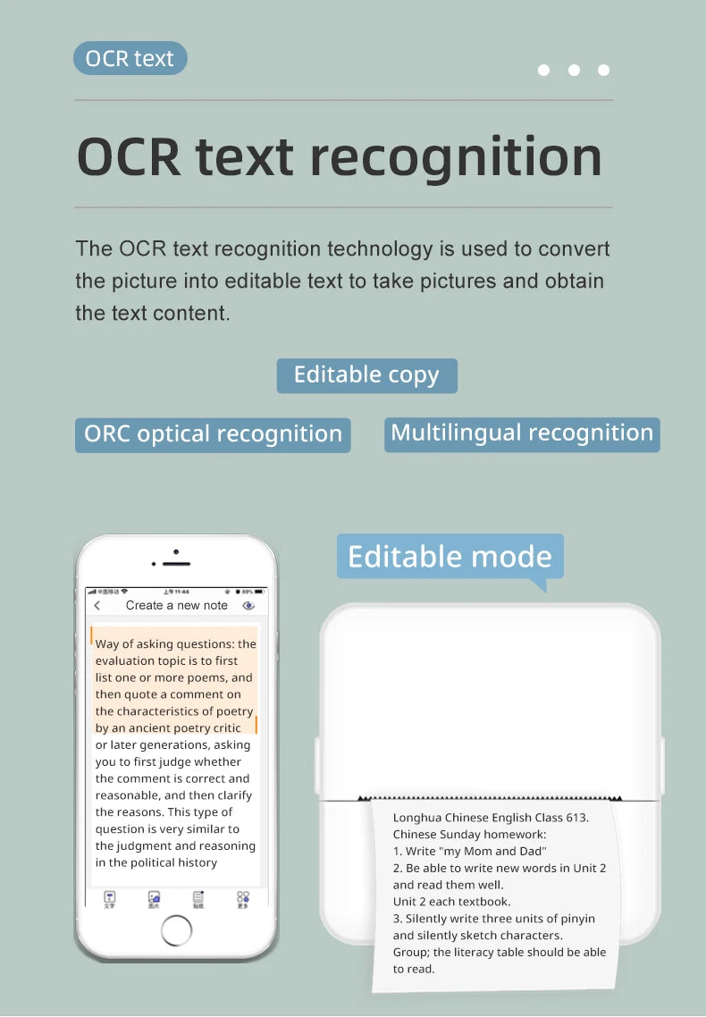 Introducing the Mini HD Portable Label Thermal Printer Endurance Bluetooth Printer for Student Error Title Note Wrong Pocket Inkless Printing, your ultimate companion for efficient and convenient printing. This compact device is designed for students and professionals who require a portable solution that doesn't compromise on quality. With high-speed printing capabilities of up to 20 pages per minute, you can swiftly create clear labels and notes without the ongoing expense of ink cartridges. The Bluetooth connectivity allows seamless pairing with your smartphone or tablet, making it easier than ever to manage your work on the go. Plus, with innovative inkless printing technology, you not only save money but also contribute to a more sustainable environment. Perfect for organizing study materials, labeling items, or jotting down quick notes, this printer enhances your productivity at every turn. Product Highlights. High-Speed Printing: Enjoy rapid print speeds of 20ppm for efficient label and note creation. Wireless Connectivity: Effortlessly connect to your devices via Bluetooth for seamless printing experiences. Superior Resolution: Achieve sharp prints with a maximum resolution of 203dpi, ensuring your text and labels are always clear. Inkless Printing: Eliminate the need for ink cartridges, making printing cost-effective and environmentally friendly. Roll Feed Mode: Designed for convenience, allowing for long printing tasks without interruptions. After-sale Service: Enjoy peace of mind with a three-guarantee after-sale service offered by the shop.