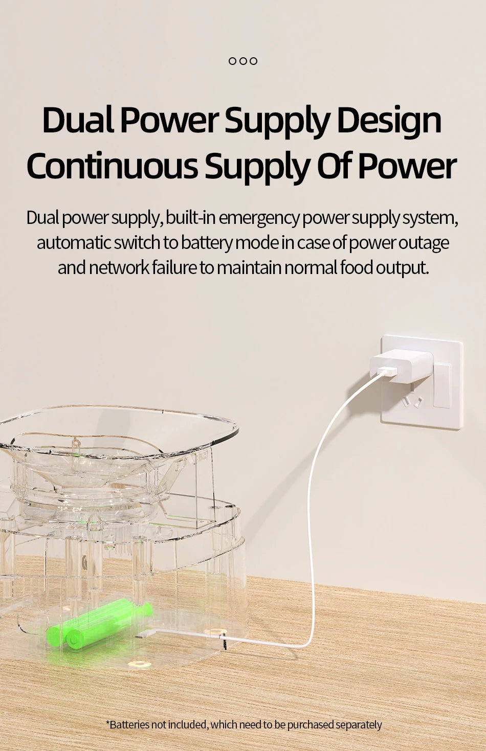Transform your pet care routine with the ROJECO Automatic Cat Feeder Smart WiFi Kibble Dispenser, the ultimate solution for busy pet owners. This innovative pet feeder allows you to manage feeding times and portions remotely through a user-friendly app, ensuring your furry friends are well-fed even when you're not home. With a generous 4L capacity, it caters to small to medium-sized pets for up to 2-3 weeks, promoting healthy eating habits while alleviating your worries about their hunger. Ideal for both cats and dogs, this automatic dispenser is designed specifically for dry food, making mealtime hassle-free and convenient for every pet lover. The ROJECO feeder features a sleek and durable design, equipped with an LCD display for easy operation. Schedule up to 10 meals a day and customize portions from 6 2g, ensuring your pet's dietary needs are met with precision. Say goodbye to early mornings and late-night feedings β€” with the ROJECO feeder, your pet will be well-fed and happy, whether you’re on vacation or busy at work. Product Highlights: WiFi-enabled for remote feeding control via the ROJECO app. 4L capacity, sufficient to feed small to medium-sized pets for 2-3 weeks. Schedule up to 10 meals per day with precise portion control. Detachable design for easy cleaning and maintenance. Dual power supply options: AC power and battery backup (batteries not included).
