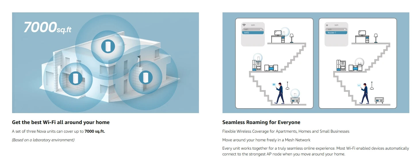- Whole Home Coverage: Eliminates Wi-Fi dead zones with expansive coverage of up to 7,000 sq.ft.