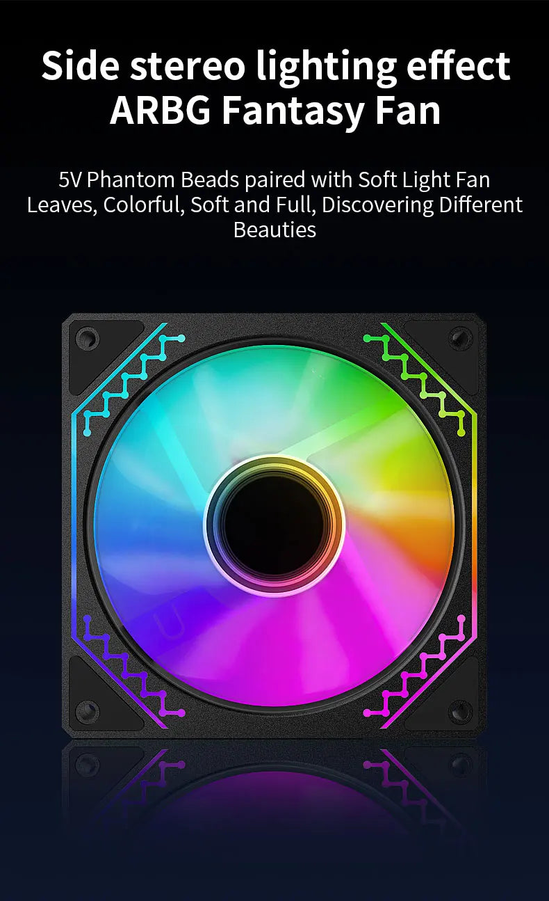 • Impressive ARGB Lighting: Each fan features a 5V 3-pin ARGB lighting system for customizable colors and effects that align with your build's unique style.
