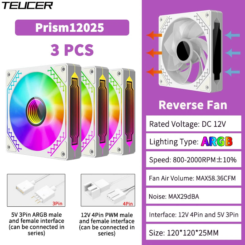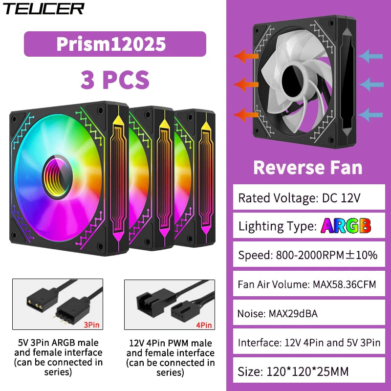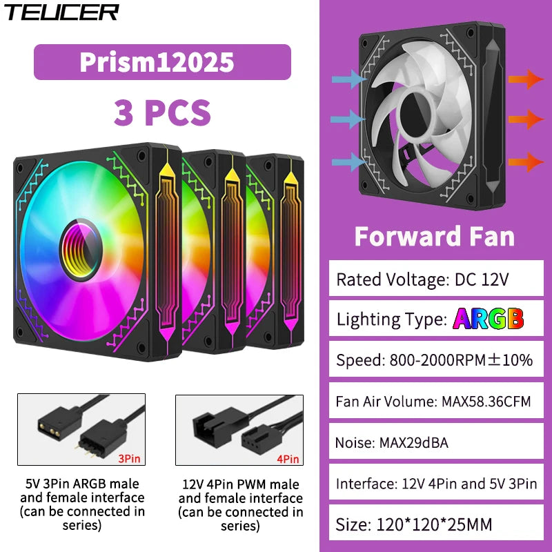 Whether you're playing the latest AAA titles or tackling intensive workloads, the TEUCER Prism12025 fans provide a powerful and visually stunning solution.