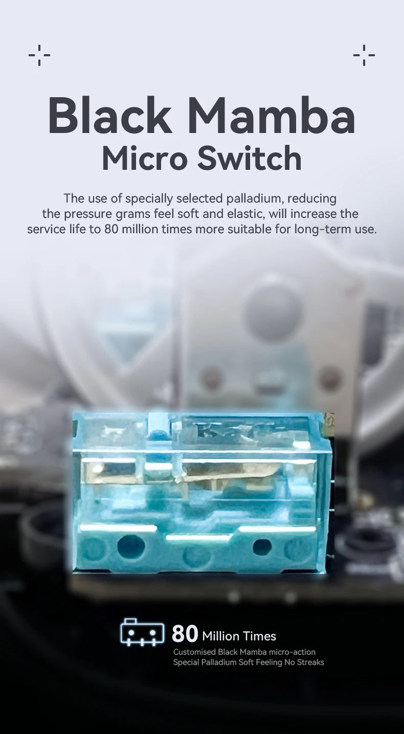 • Ultra-Precise Sensor: Equipped with PixArt PAW3395 for up to 26000 DPI precision.