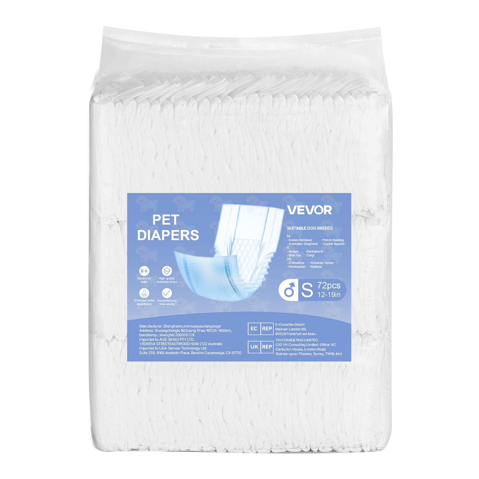Type: Disposable Male Dog Diapers,Waist Size: 12 to 19 in / 30.48 to 48.26 cm,Item Model Number: G-S-144,Wrap Size: S,Product Dimensions: 21.65 x 7.87 in / 550 x 200 mm (per piece),Net Weight: 6.39 lbs / 2.9 kg,Total Quantity: 144 PCS (2 Packs of 72)