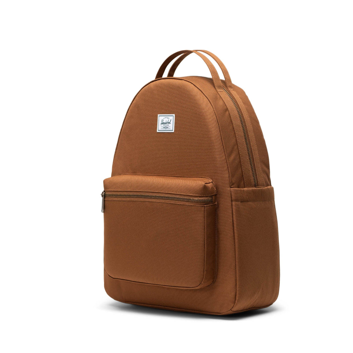 The Herschel Nova 18L Backpack - Rubber is your ideal companion for navigating through a busy day. Made from 100% recycled Ecosystem fabrics, this environmentally conscious backpack not only meets your daily needs but also contributes to a sustainable future. Its durable Ecosystem 600D fabric, crafted from recycled post-consumer water bottles, ensures that your essentials are securely carried while making a positive impact on the environment. The Nova Backpack features a padded floating sleeve that fits most 13" and 14" laptops, making it perfect for students and professionals alike. With convenient zippered closures, dual top carrying handles, and EVA-padded shoulder straps, this backpack is designed for comfort and functionality. It even includes a water bottle pocket that expands to accommodate various sizes, ensuring you stay hydrated on the go. Product Highlights: Environmentally friendly: Made from 100% recycled materials. Padded sleeve for laptop protection, fitting most 13" and 14" models. Convenient grab-and-go dual top carrying handles. Expandable water bottle pocket for versatility. Front pocket organizer with key clip for easy access to essentials.