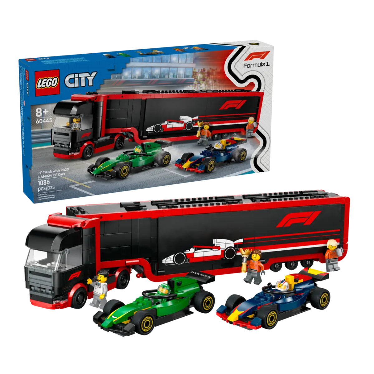 - Premium 1,086-piece LEGO City F1 Truck & Cars set for ages 8+