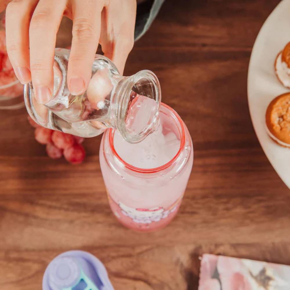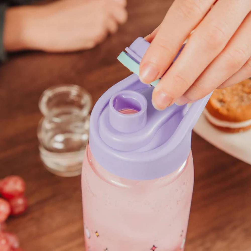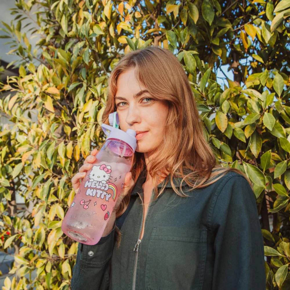 Stay refreshed in style with the Sanrio Hello Kitty Rainbow Treats and Stars 28 oz Water Bottle with Lid - Multicolor, a must-have for fans and the hydration-conscious alike. Adorned with the beloved Sanrio character in one of her most delightful designs, this eye-catching transparent pink bottle features Hello Kitty on the front. It's not just about looks; functionality meets fashion with a secure, purple screw-on lid, ensuring your drinks stay safe and spill-free, no matter how active your day gets. Whether you're heading to the gym, school, or a picnic, this water bottle is perfect for every occasion. Made from BPA-free plastic, it's designed for everyday use while showcasing your love for all things kawaii.