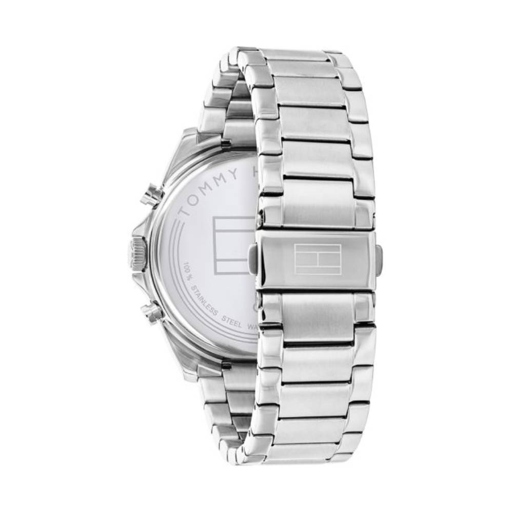The Tommy Hilfiger Men’s 44mm Silver Bracelet Watch delivers a bold and refined presence with its stainless steel case, polished silver bracelet, and striking blue aluminum bezel and dial. Built for durability and everyday elegance, it features a 44mm case that enhances wrist appeal while offering 5 ATM water resistance for dependable performance in daily environments. Powered by a precise quartz movement and designed with multifunction displays, this timepiece ensures accurate timekeeping and practical utility. A true blend of sophistication and modern style, it is crafted to elevate your look for any occasion