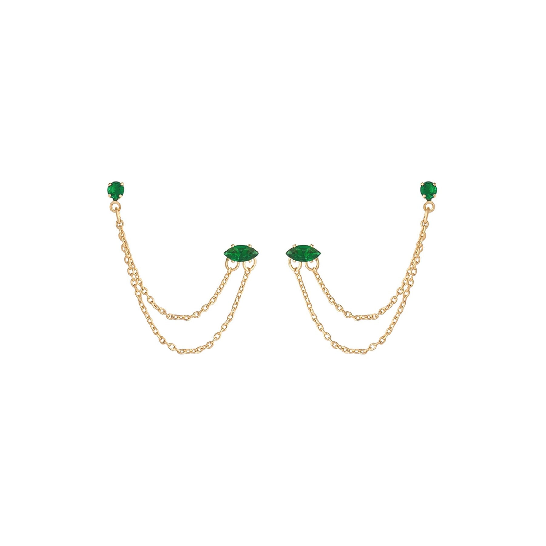Ettika Emerald Crystal Women's 18k Gold Plated Dangle Earrings with Two Hole Piercing Chain