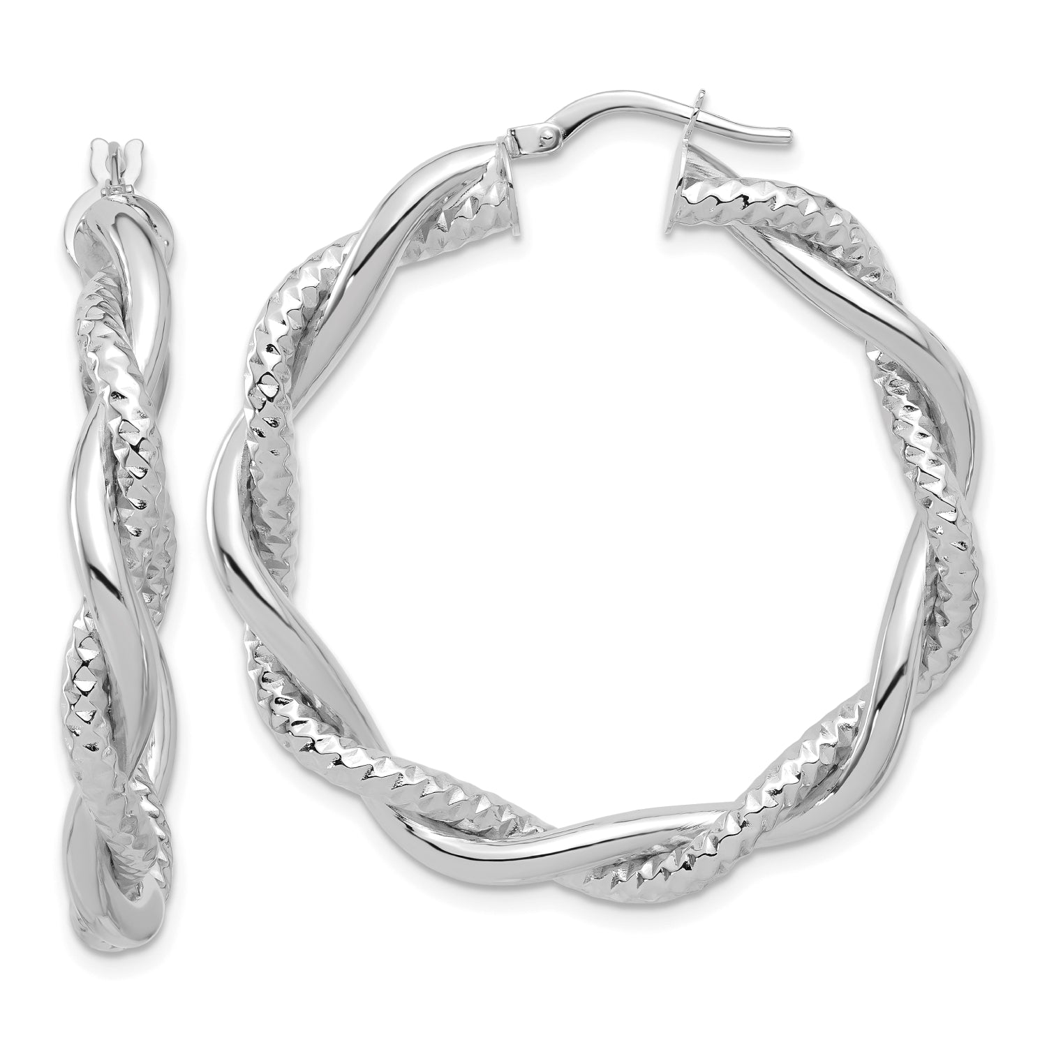 Leslie's Women's Textured Twisted Round Hoop Earrings in 14K White Gold
