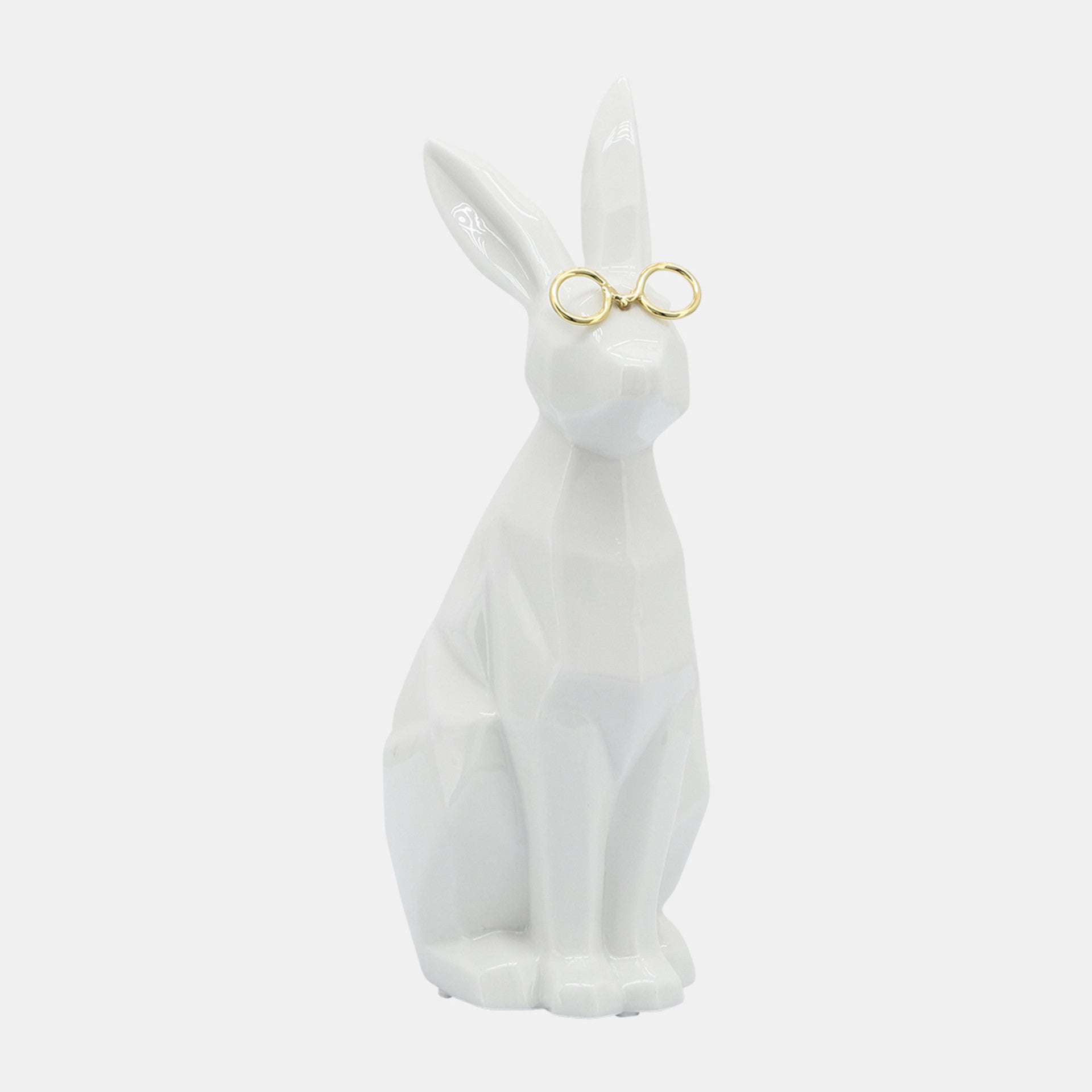Sagebrook Home Contemporary 9" Ceramic Bunny with Glasses - White/Gold