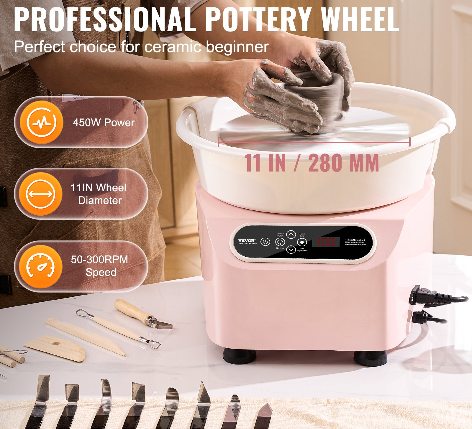 Pottery Wheel, 11 inch Pottery Forming Machine, 450W Electric Wheel for Pottery with Foot Pedal and LCD Touch Screen, Direct Drive Ceramic Wheel with Shaping Tools for DIY Art Craft, Pink