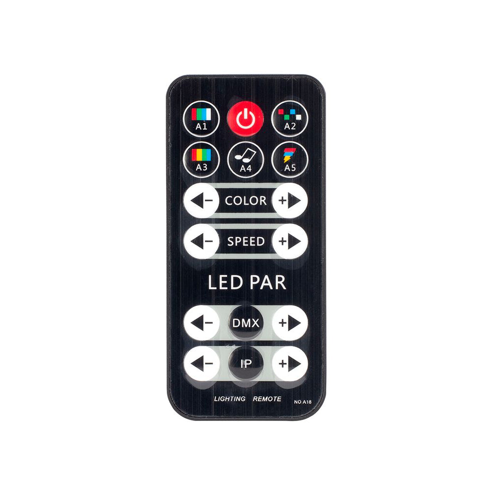 - Multiple control options: wireless remote, DMX capability, and sound active mode.