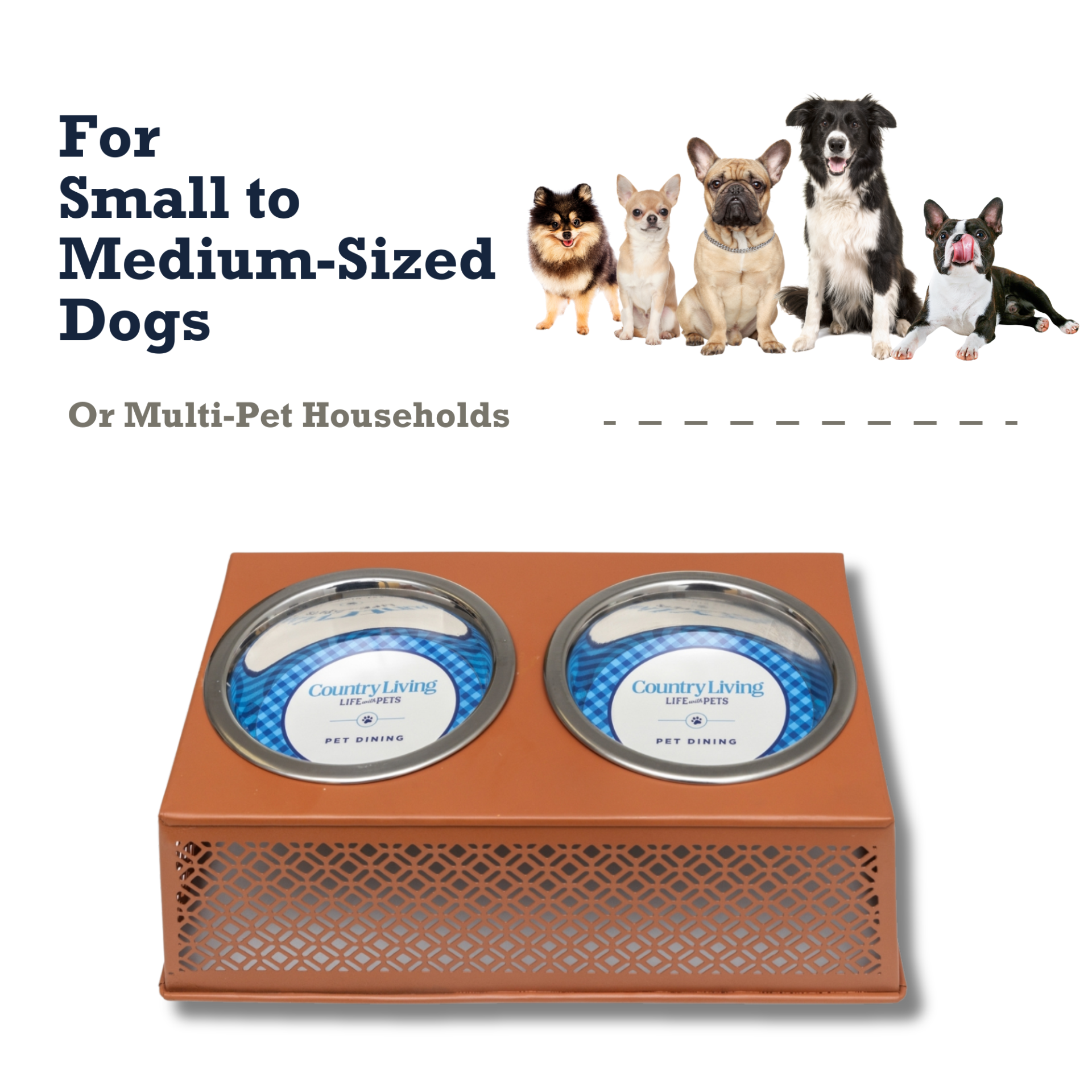 Country Living Elevated Dog Feeder with 2 Stainless Steel Bowls (16oz each) – Ideal for Small to Medium Dogs – Apricot Brandy