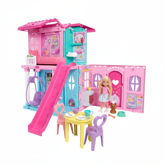 The Barbie Fashion Clothes & Accessories 2-Pack! This set includes stylish pink and yellow outfits, a blue tank with a skirt, trendy pink sunglasses, and a cute yellow necklace.